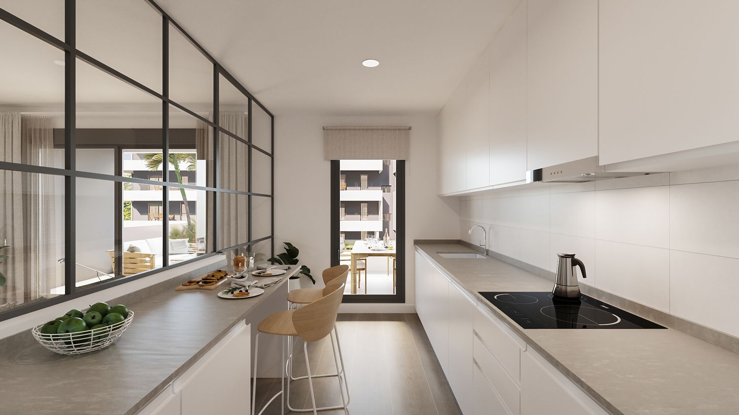 Each apartment is equipped with furnished kitchens and offers the possibility of customizing your living space. The building includes subterranean parking spaces with direct access from the main entrances, alongside storage rooms and bicycle parking facilities. Combined garage and storage options are available starting at competitive prices.