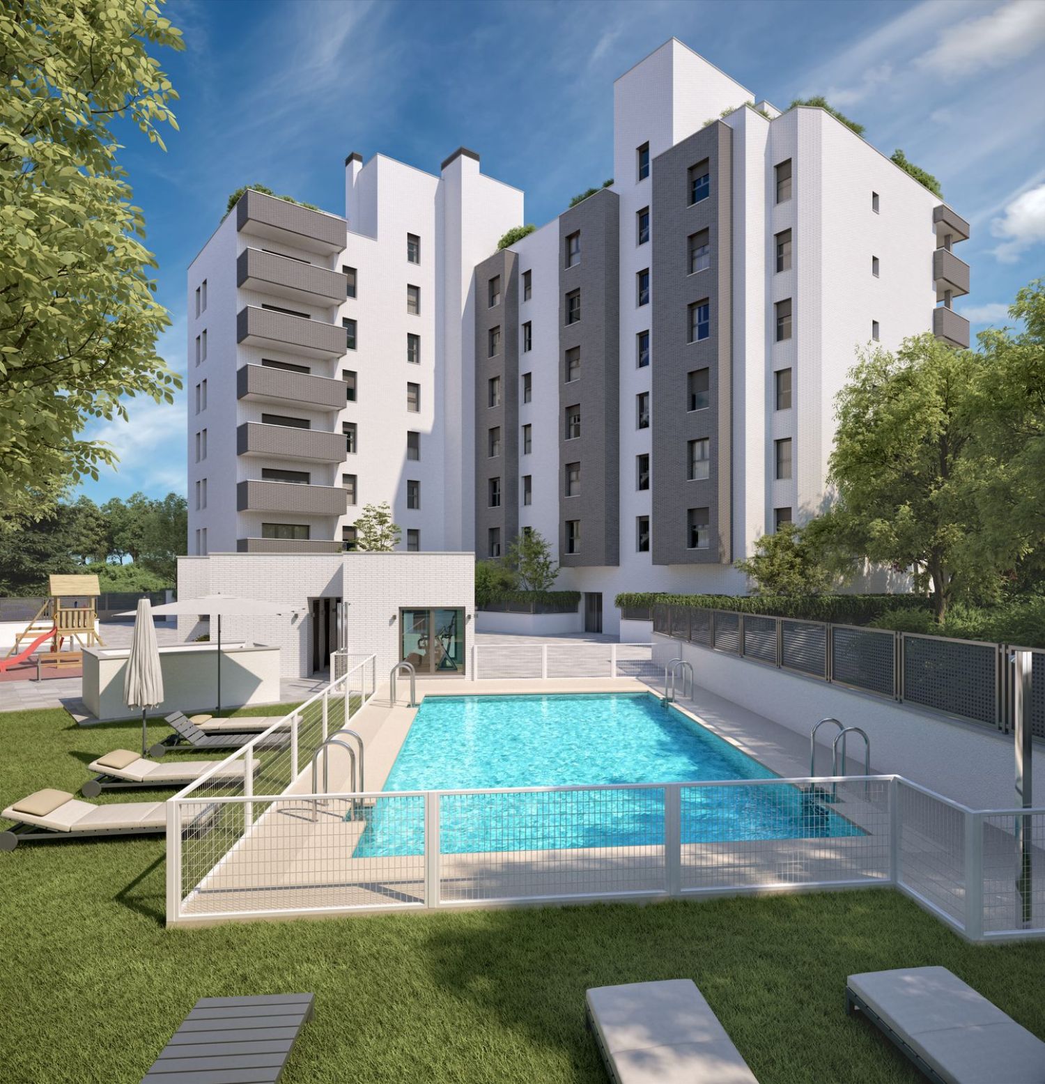 This latest development is a private urbanization project offering bright living spaces with 1 and 2 bedrooms, designed for comfortable living. Each residence features a terrace, with ground-floor homes providing gardens and penthouses boasting expansive terraces. The buildings include a garage, a pool set within a green area, a children's play zone, and a gym, all complemented by sustainable features like ample windows, refreshing underfloor heating, and aerothermal technology. The project is also in the process of achieving an A energy rating.