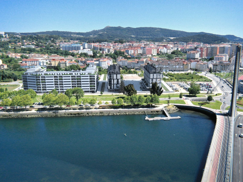 Under construction! A new residential complex is being developed in Pontevedra, featuring 85 units ranging from studio apartments to 1 and 2-bedroom homes, as well as penthouses with terraces. The development comprises two buildings with eight floors each, offering breathtaking views of the nearby estuary.