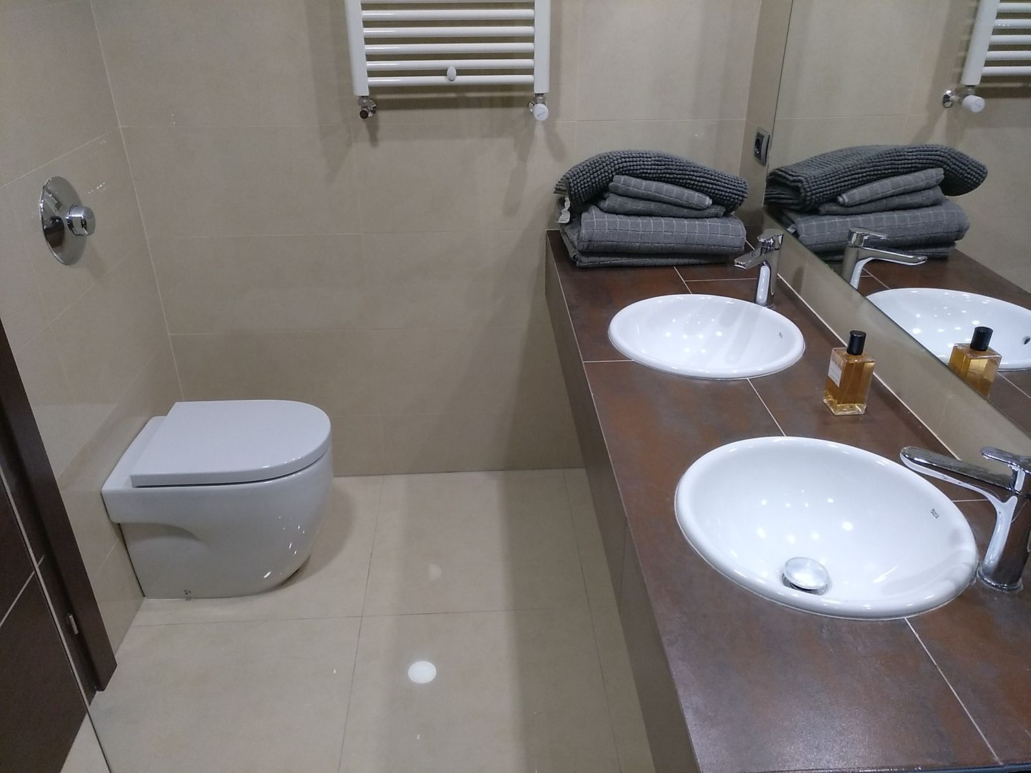 The apartments incorporate premium features such as porcelain stoneware tiling, built-in wardrobes and vanities, integrated shower trays with glass enclosures, and Roca Targa model faucets. Comfort is further enhanced with injected aluminum radiators and individual gas heating systems. Special attention has also been given to sound and thermal insulation, ensuring a serene and comfortable living environment that meets high residential standards.