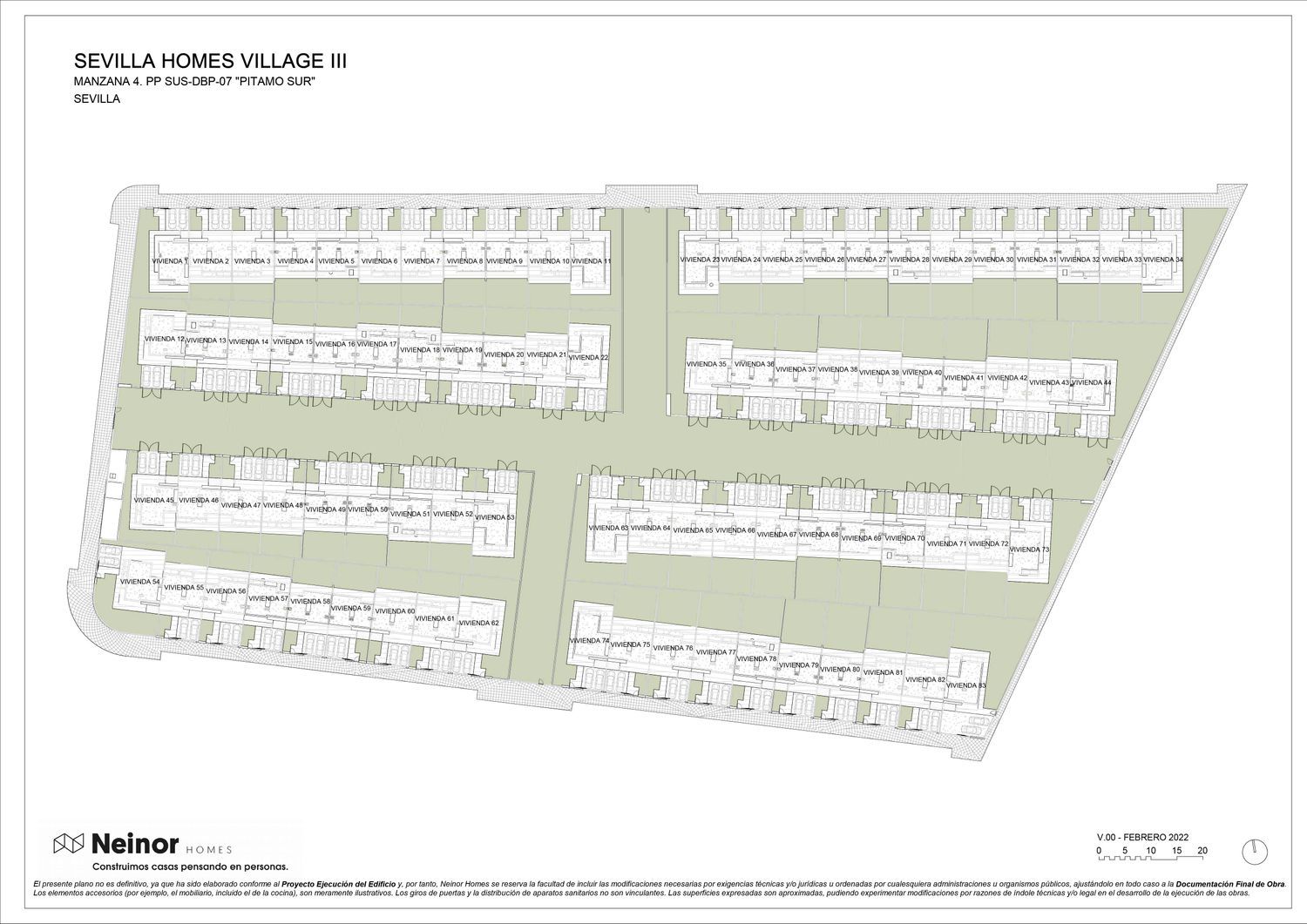 combines modern and warm facades with high-quality materials and construction finesse. It forms an integral part of the Sevilla Homes Club, pioneering as the first Living Club in Sevilla. This offers unique experiences, featuring spectacular communal spaces, various pools (including a lap pool), a gym, a café, children's play areas, a nursery, and sports zones. These amenities are exclusively available to the residents of Sevilla Homes Village. Located a short five-minute drive from Avenida de la Palmera, these homes are an ideal choice for those seeking new construction in Sevilla.