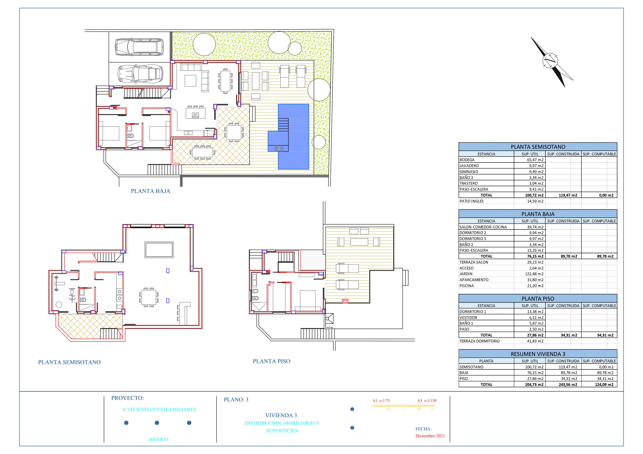 Doble acristalamiento con vidrios de seguridad en semisótano y planta baja.