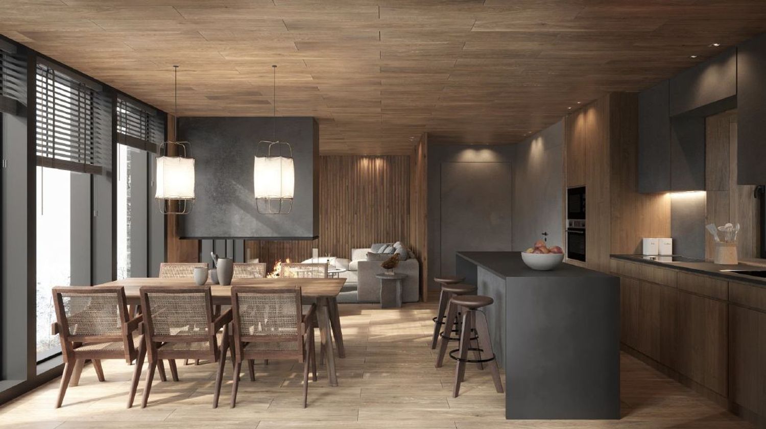Consisting of three sophisticated residences, each home offers a harmonious blend of rustic charm and modern living. Designed with care, these homes boast breathtaking southwest views and an influx of natural light. Spanning four levels and covering a generous 315 m², each residence includes four bedrooms, three bathrooms, and two additional washrooms.