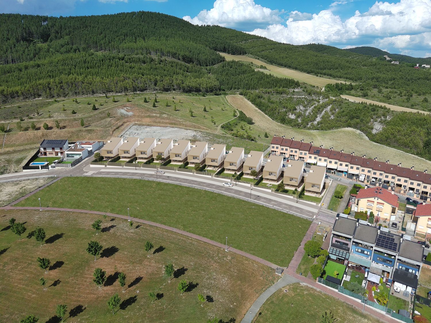 represents the perfect blend of balance and harmony. These innovative homes showcase a cutting-edge design, characterized by expansive living areas and stunning windows that create open, bright spaces. Nestled in the peaceful heights of the community in Navarra, Esteribar, these homes allow you to enjoy tranquility while being close to nature.