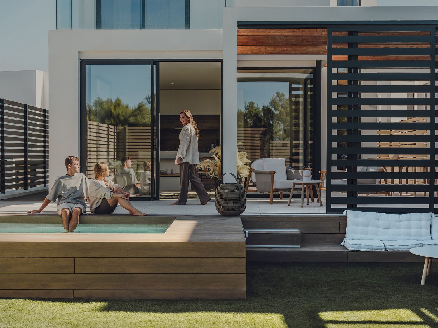 Beautiful new homes delivered in the summer of 2023 offer a modern, stylish design just a stone's throw from the beach. This esteemed gated community boasts a total of eight communal pools, lush garden areas, and round-the-clock private security for your peace of mind. The residences feature spacious, light-filled areas opening up to the outdoors, allowing for breathtaking views of the sea and the mountains. Optional rooftop Jacuzzis and private pool options are available. While some homes offer stunning sea views, others grant serene mountain vistas, and corner properties benefit from larger gardens.