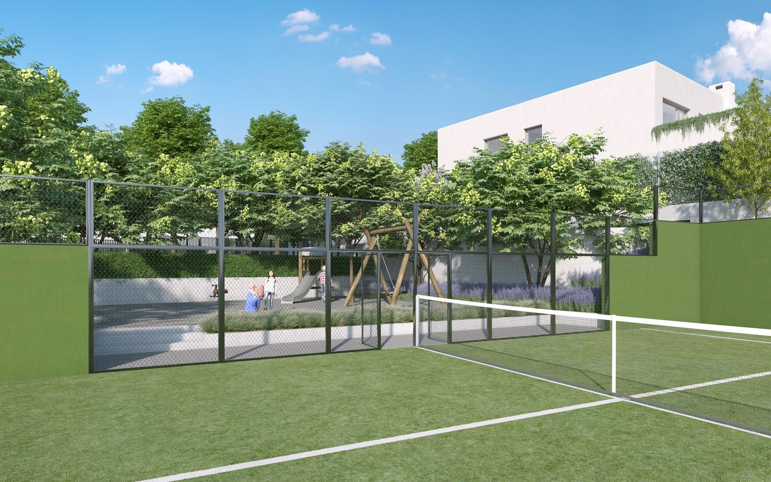 The new project offers something for every family member. Children can enjoy a large play area equipped with swings, all within a secure, traffic-free environment where parents can relax while their children play safely. Each home is surrounded by thoughtfully arranged landscaping, featuring exceptional gardens with trees, hedges, and ornamental plants, maintained by an automatic irrigation system and lighting. Immerse yourself in an environment that provides not only peace but also 24/7 security and concierge services.