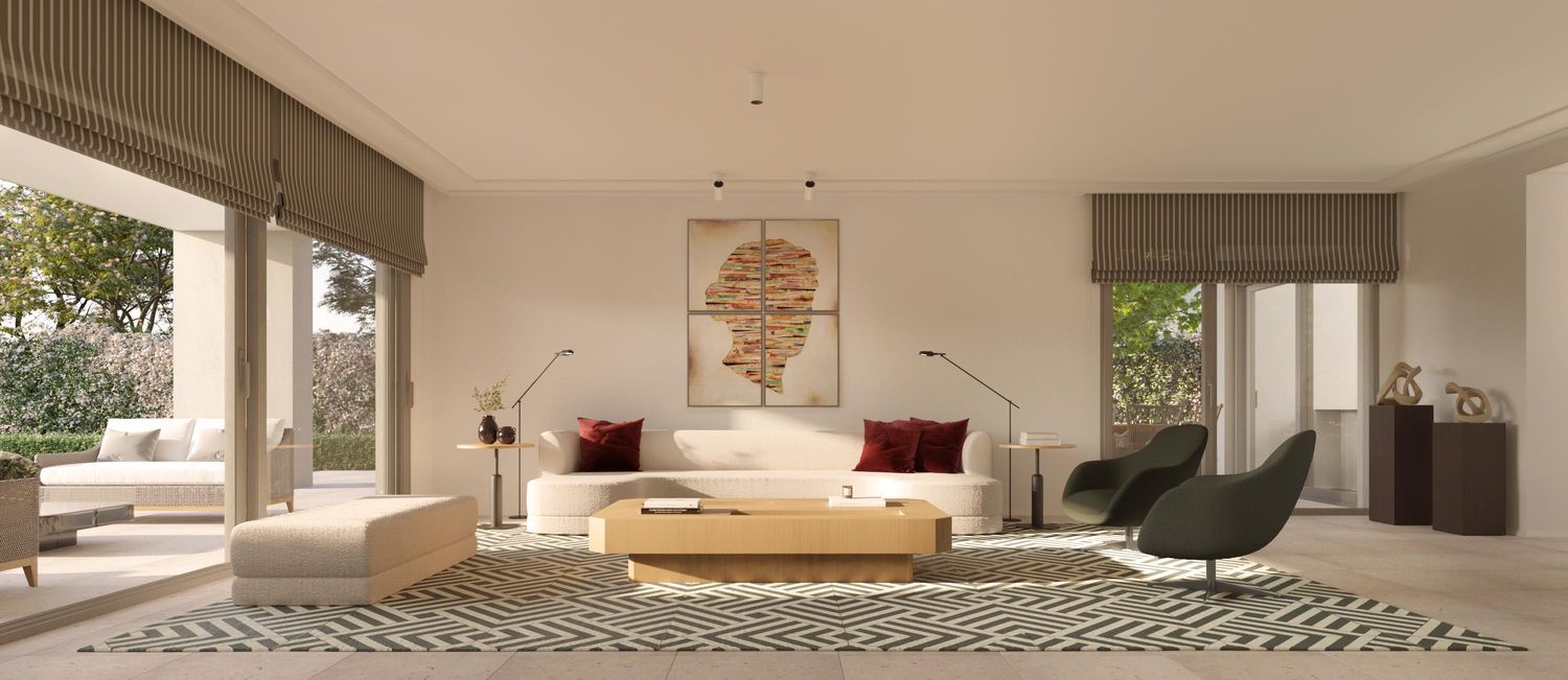 The living room and kitchen open to a spacious covered porch, paved with matching Campaspero limestone. Some units offer underground parking with three spaces and charging points for electric vehicles. Do not hesitate to contact us for more information; you will be able to explore all the details of , a unique project consisting of 24 magnificent residences with expansive green spaces, a swimming pool, a gym, a padel court, and private security.