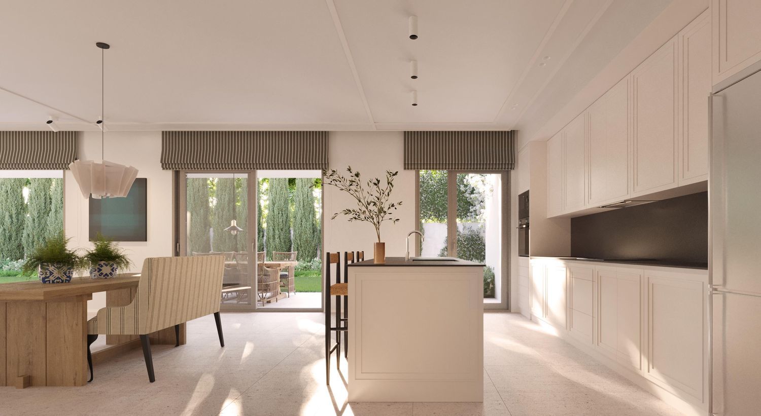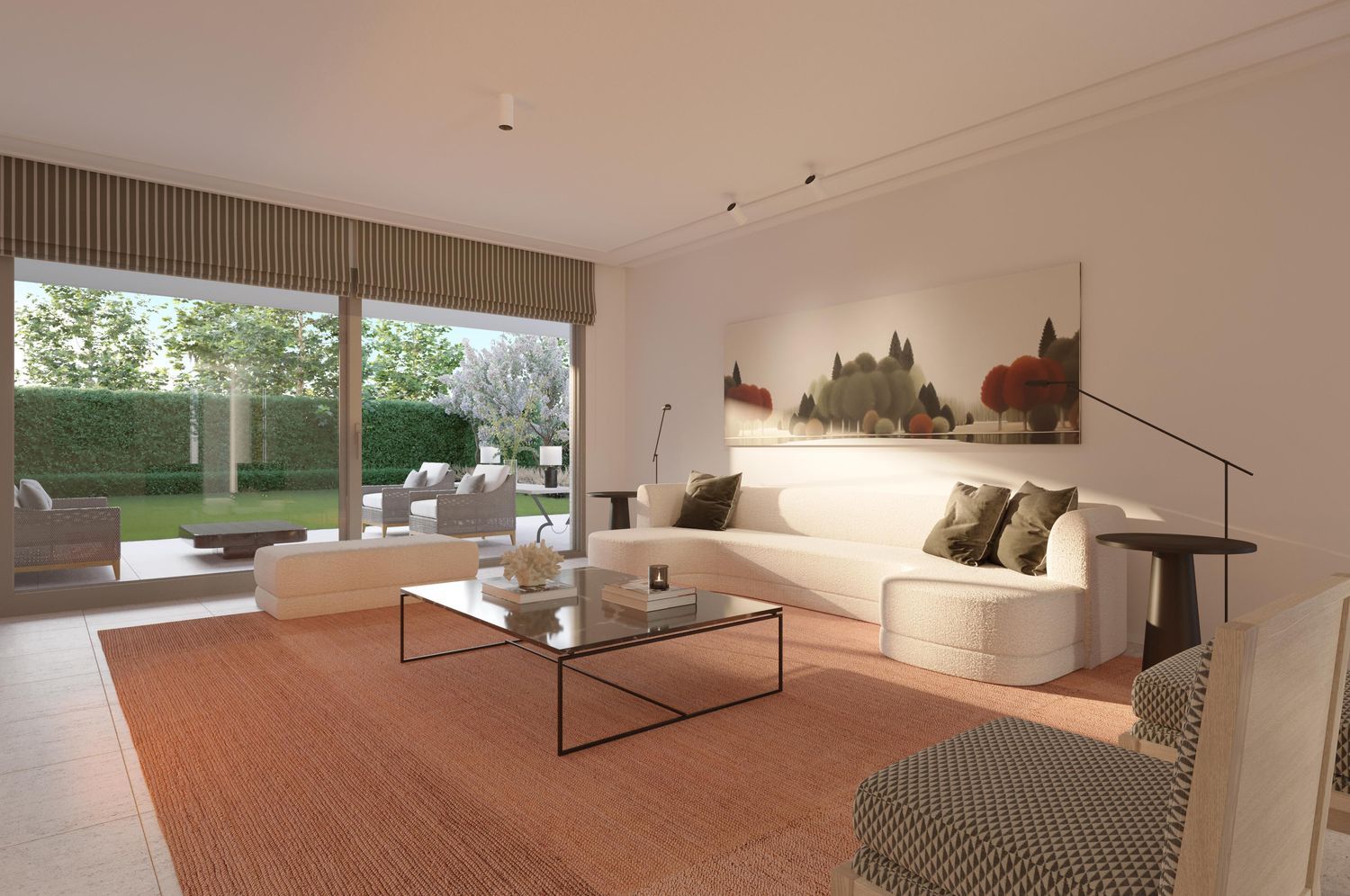 Residents benefit from fantastic communal spaces designed for unforgettable experiences. Stroll along lush, tree-lined paths, bask in the tranquility of meticulously maintained gardens, or cool off in a stunning outdoor pool. The property also includes a comprehensive gym with panoramic garden views and a padel court located at the entrance of the community. With timeless, elegant design and well-balanced layouts, these homes offer inviting spaces with attention to every detail.