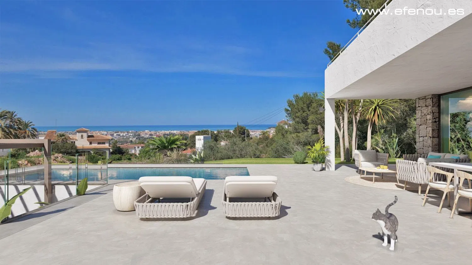 Un proyecto moderno en Dénia con preciosas vistas al mar. La vivienda se distribuirá en dos plantas más planta subterránea, y tendrá 250 m2 de superficie construida en una parcela de 927 m2. Planta baja: amplio salón-comedor con paredes de cristal, conectado a una cocina americana totalmente equipada, y con acceso directo a la terraza principal. Aquí tendrá un dormitorio con armario, un baño y un armario adicional de entrada. Primera planta: Aquí encontrará el dormitorio principal con baño en suite y un vestidor. Este dormitorio tendrá acceso directo a una enorme terraza y una ventana panorámica con vistas al mar. En este nivel también encontrará dos dormitorios más y un baño completo. Planta semisótano: Sala diáfana de más de 50 m2. Sala adicional para lavandería, maquinaria y almacén de 14 m2. EQUIPAMIENTO: Carpintería exterior: oscilobatiente de aluminio con rotura de puente térmico, puertas de terrazas correderas con cristal de seguridad y con control solar. Puerta blindada y persianas lacadas enrollables de aluminio. Carpintería interior: Puertas interiores ciegas de dimensiones suelo-techo. Armarios forrados y equipados con cajoneras, baldas divisorias y barra de colgar. Electricidad: Instalación completa de iluminación LED empotrada en el techo y video portero. Baños: Mampara de ducha de cristal templado y lavabo sobre mueble en baño principal. Cocina de diseño de alta calidad: totalmente equipada con puertas lacadas. Sistema de apertura de cajones con amortiguadores en cierre de puerta. Encimera y revestimiento de pared en cuarzo con fregadero integrado. Incluye columna de horno-microondas y placa de inducción. Extractor silencioso con filtros de carbón. Climatización: Sistema Airzone, compuesto por bomba de calor mediante conductos en falso techo, con rejillas independientes en cada habitación para la producción de frío y calor. Sistema de ventilación con recuperación de calor. ZONA: Esta Villa estará ubicada en la localidad costera de Dénia, a los pies del fabuloso parque natural El Mongó. Esta conocida localidad de la provincia de Alicante cuenta con una amplia oferta de ocio y restauración de calidad, así como varias zonas de playa y divertidas rutas de montaña. Se encuentra a 100 km del aeropuerto de Alicante y a 120 km del de Valencia. Aprovecha esta oportunidad y contacta con nosotros para más información. Dénia es conocida por su gastronomía, restaurantes con estrellas Michelin, deportes acuáticos como el buceo, la vela, el surf, el paddle surf, etc. Kayak, jet ski, paseos en barco. También es conocido por su ferry / puerto a las Islas Baleares (Ibiza, Formentera, Mallorca, Menorca). La villa está muy cerca de la ciudad, todas sus comodidades y servicios, la playa está a poca distancia. .
