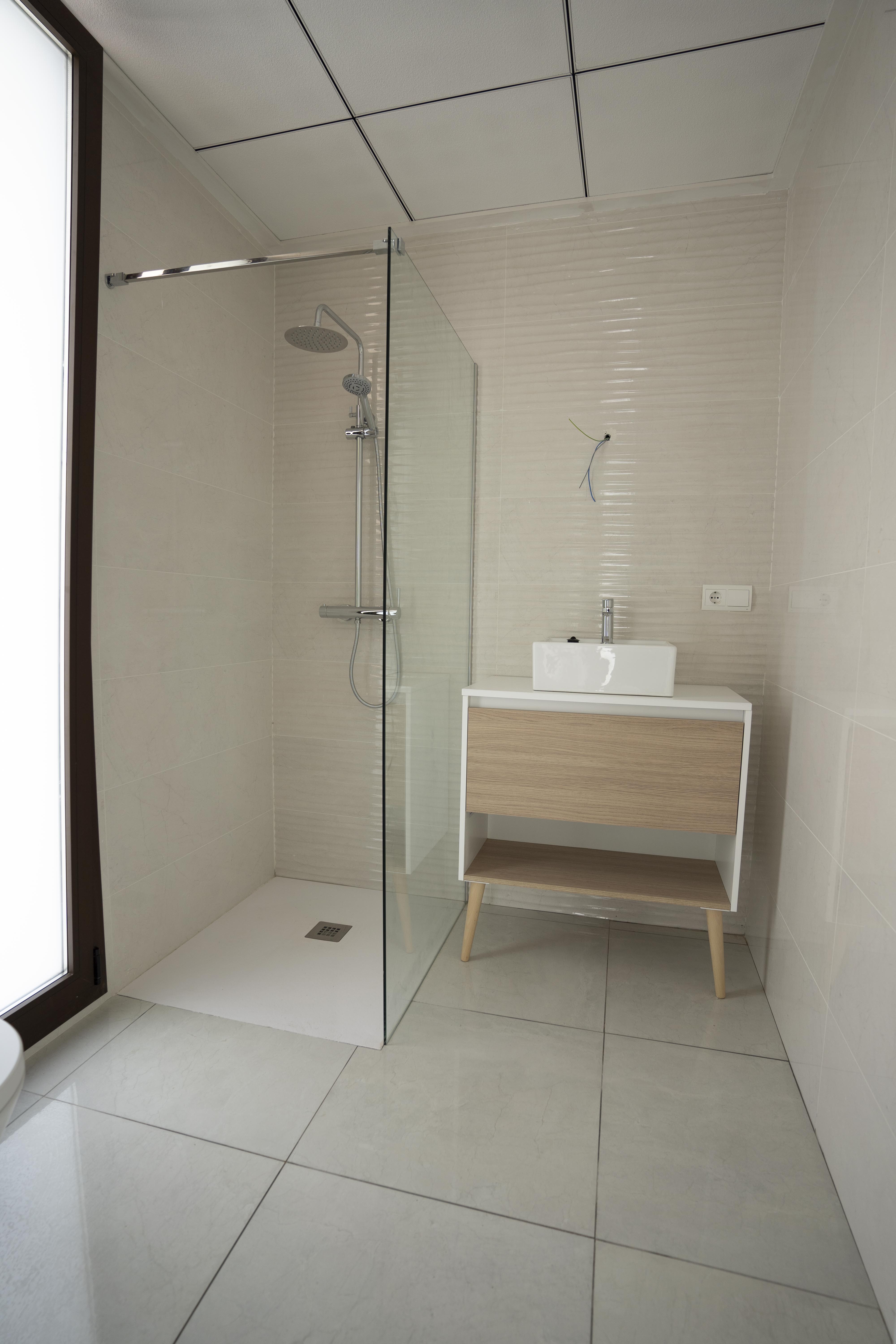- Ducha: Platos de resina extraplanos, mamparas de vidrio templado de alta seguridad y grifería monomando termostática.
