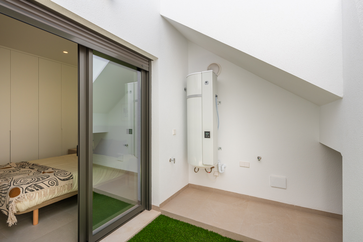 These stunning homes feature a spacious private terrace, solarium, and a personal swimming pool, all crafted with top-quality materials. Each villa includes a fully equipped kitchen, and bedrooms come with generous built-in wardrobes. The convenience of on-site parking is also available.
