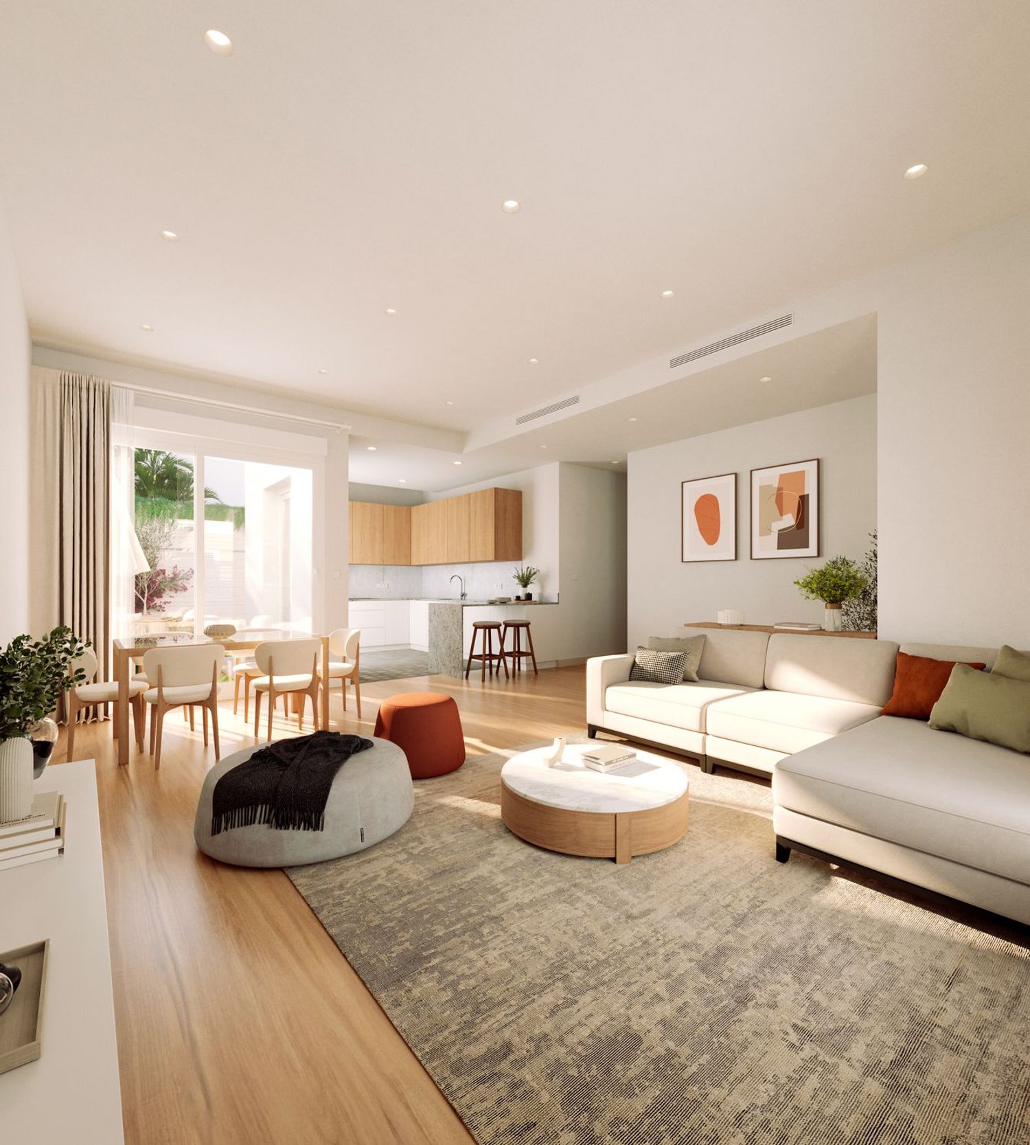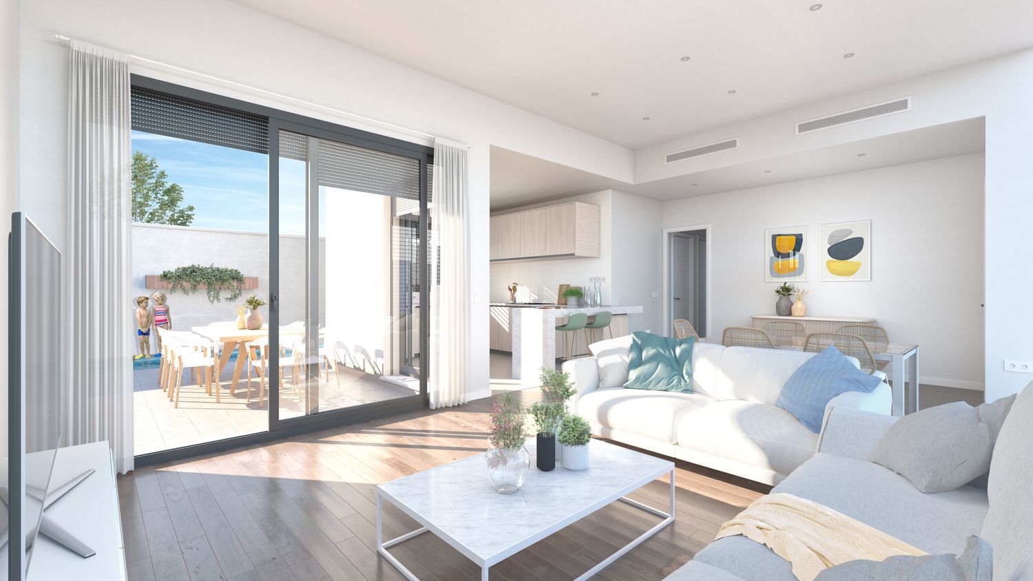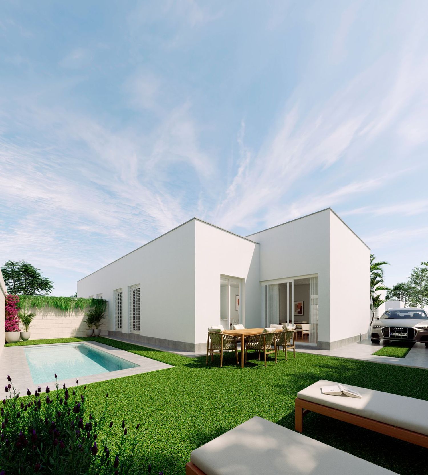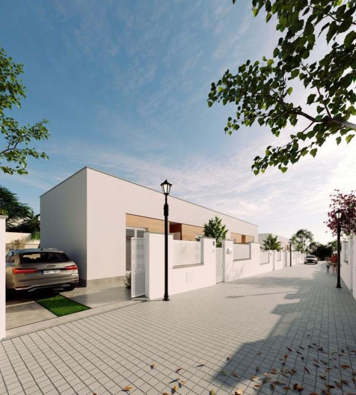 In the charming area of Sevilla, there lies an exquisite real estate opportunity: twenty newly constructed homes in a development that embodies a modern and functional style. These single-story residences boast three to four spacious bedrooms, complemented by two well-appointed bathrooms, a living room, and a kitchen. Each space is characterized by high ceilings and large windows that invite natural light, crafting an ideal environment for living. Moreover, every home includes a private garden, creating a serene outdoor space perfect for gatherings, family meals, or simply unwinding in nature's embrace.