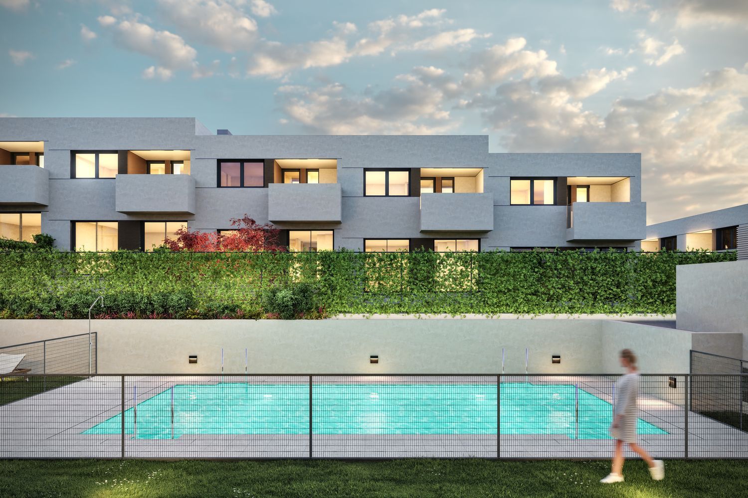 This gated community provides a secure and serene environment with lush landscaping throughout the complex. Residents will enjoy access to a swimming pool, chill-out area, and children's playground. Designed to maximize natural light and airflow, each villa boasts spacious interiors with double orientation and private gardens both at the front and back. A communal garage offers two to three parking spaces per home, with pre-installed connections for electric vehicle chargers.
