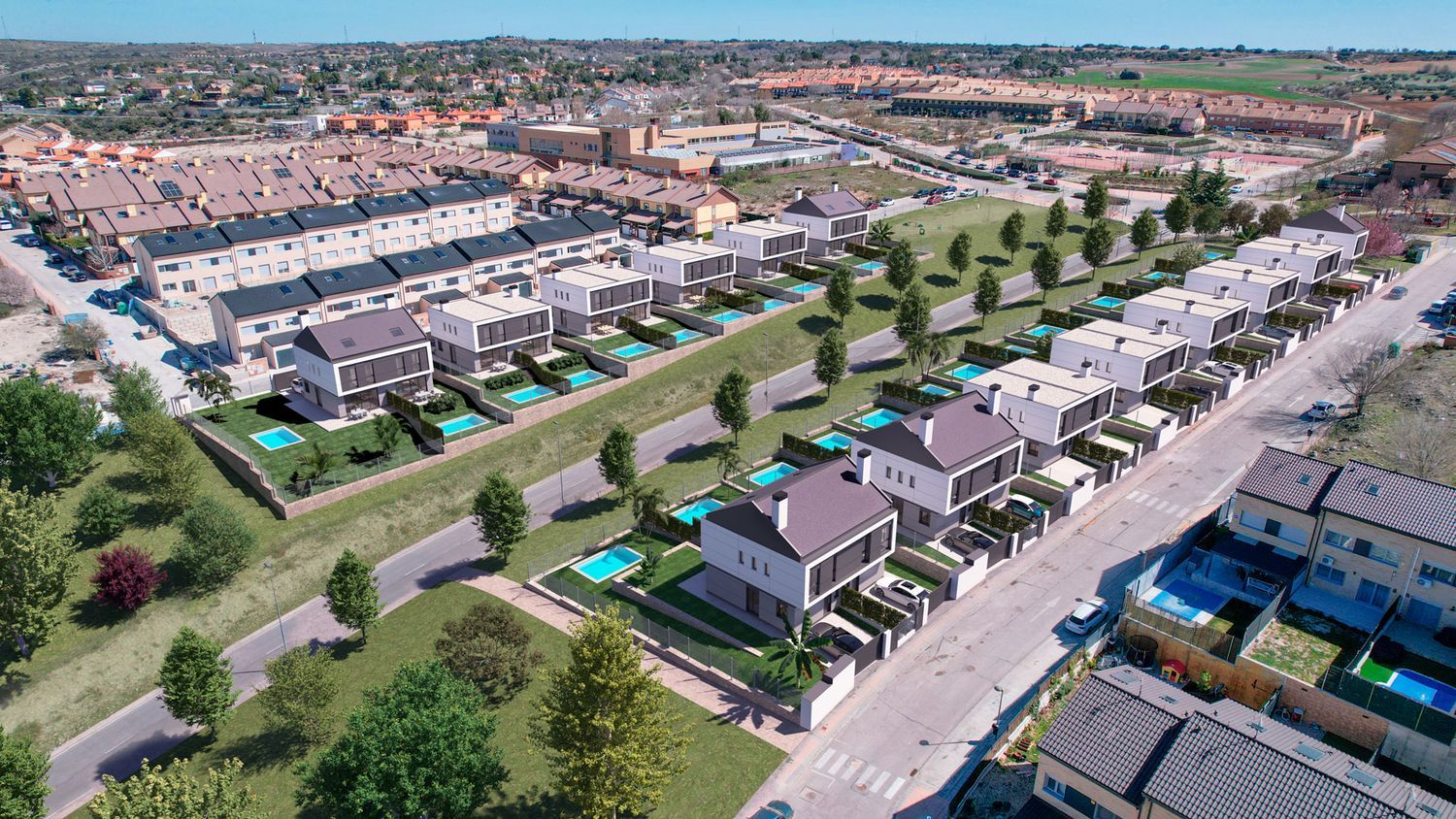 ## Life in the city VillalbillaThe city of Villalbilla provides a full range of services and amenities, including medical centers, supermarkets, banks, gas stations, and large sports facilities complete with paddle and tennis courts, soccer fields, gyms, and both indoor and outdoor swimming pools. Excellent connectivity via major highways ensures you're only moments away from shopping centers and the Alcalá de Henares train station, with easy access to Madrid’s airport in 20 minutes and the city center in just 30 minutes.