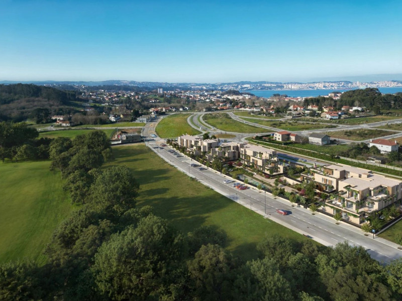The construction has commenced! This residential project is located in Oleiros, just a short distance from a golf course. It offers various services to enhance your daily life, along with excellent connectivity through multiple routes to major cities in Galicia. You can reach both the city center and the airport within minutes.