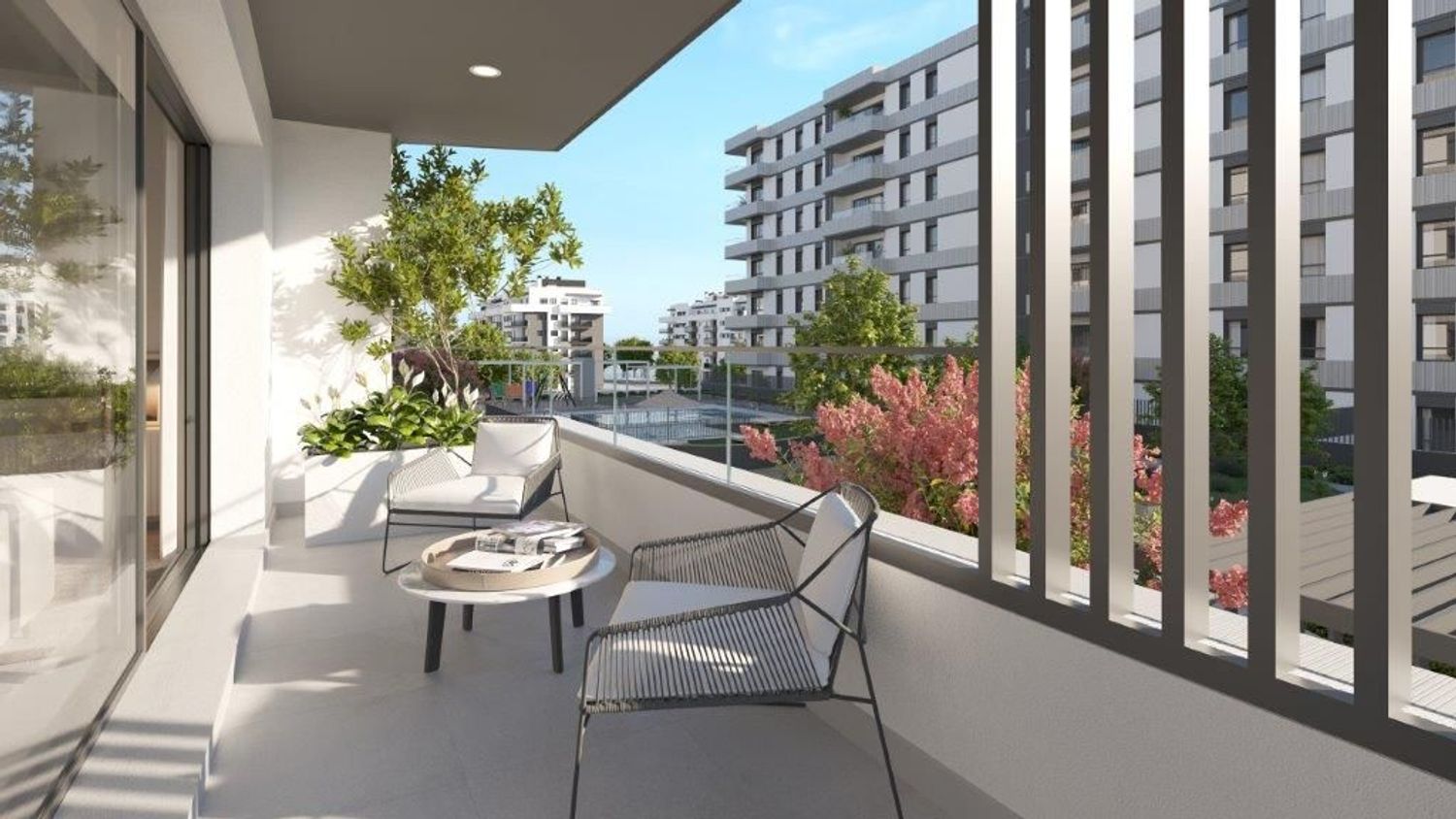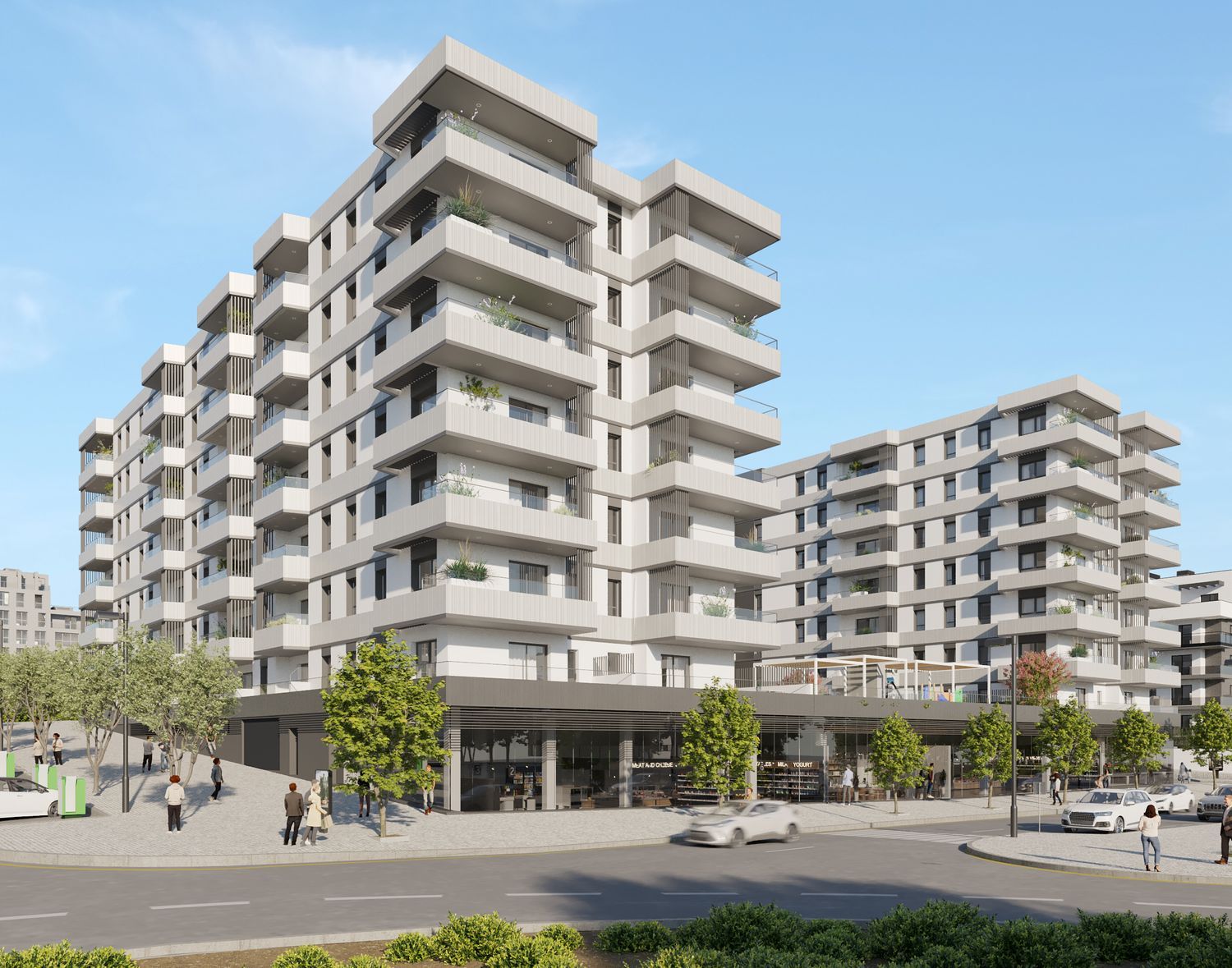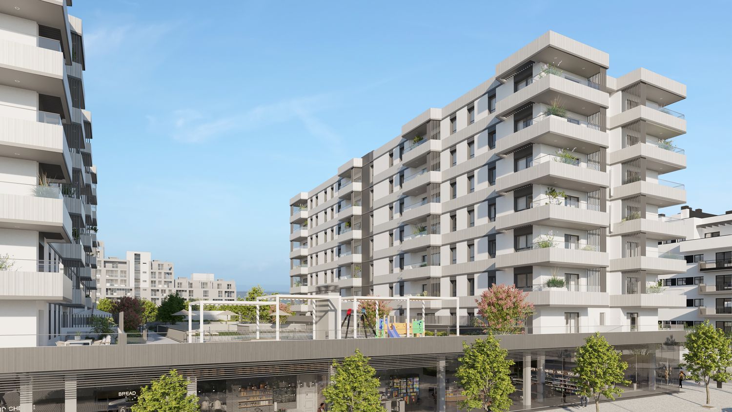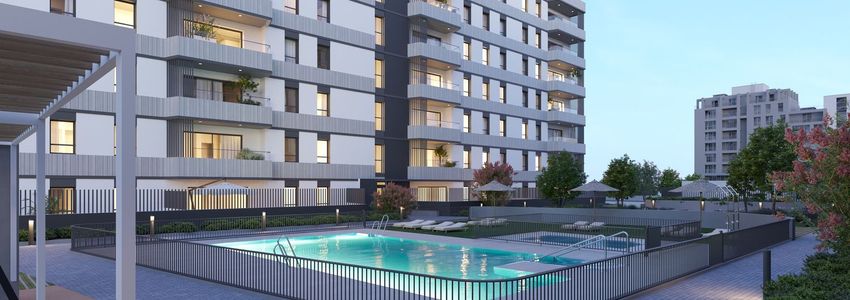 We offer a selection of modern residences, with 124 units ranging from two to three bedrooms. These homes, with sizes between 92 m² and 111 m², stand out for their spaciousness, natural lighting, versatility, and functionality. They feature impeccable quality materials and innovative, cutting-edge design. Additional amenities include adult and children's swimming pools, a children's play area, bicycle parking, coworking spaces, and a gym.