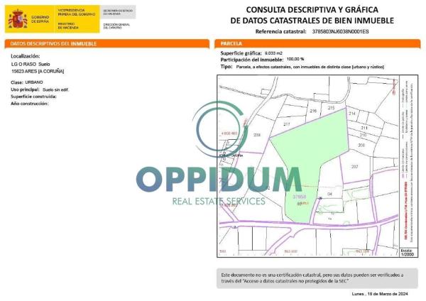 Vendemos este suelo urbano no consolidado con número catastral 3785803NJ6038N0001ES. Sus usos son mixtos, en parte como vivienda unifamiliar y en parte como agricultura rural. Forma parte del PXOM. Tiene 2006 m2 de suelo urbano que se puede segregar para realizar 2 viviendas y adicionalmente cuenta con aproximadamente 7.027 m2 de suelo rústico. Las condiciones de la edificación se establecen en la propia Ordenanza: . Usos previstos: Vivienda unifamiliar aislada. . Parcela mínima: 600 m2. . Retranqueos: mínimo a todos los linderos de 3 m2 . Edificabilidad max: 50% de la superficie de la parcela. . Ocupación max: 30%. Promoción probable: 2 viviendas unifamiliares aisladas con una edificabilidad sobre rasante de 360 m2 cada una y 180 m2 por planta. La propiedad se encuentra ubicada en una zona tranquila y semirrural de la ciudad, rodeada de fincas dispersas, destinadas principalmente al cultivo de forrajes, pastos y forestales, y de fácil acceso a través de vías de comunicación. Puede disfrutar de este privilegio porque puede. Ubicado estratégicamente en la zona de Caamouco con acceso directo a Praia de Cezel, Praia de Sabadelle, Praia de Redes y Club Marítimo de Redes. Además, este sector es perfecto para personas que buscan un ambiente tranquilo y seguro, pero al mismo tiempo quieren una ubicación cerca de todos los servicios de la ciudad. En Oppidum te acompañamos y asesoramos en todo el proceso de compra, financiación, reforma y potenciales ayudas. Este anuncio no es vinculante, puede contener errores. Se muestra a título informativo y no contractual.