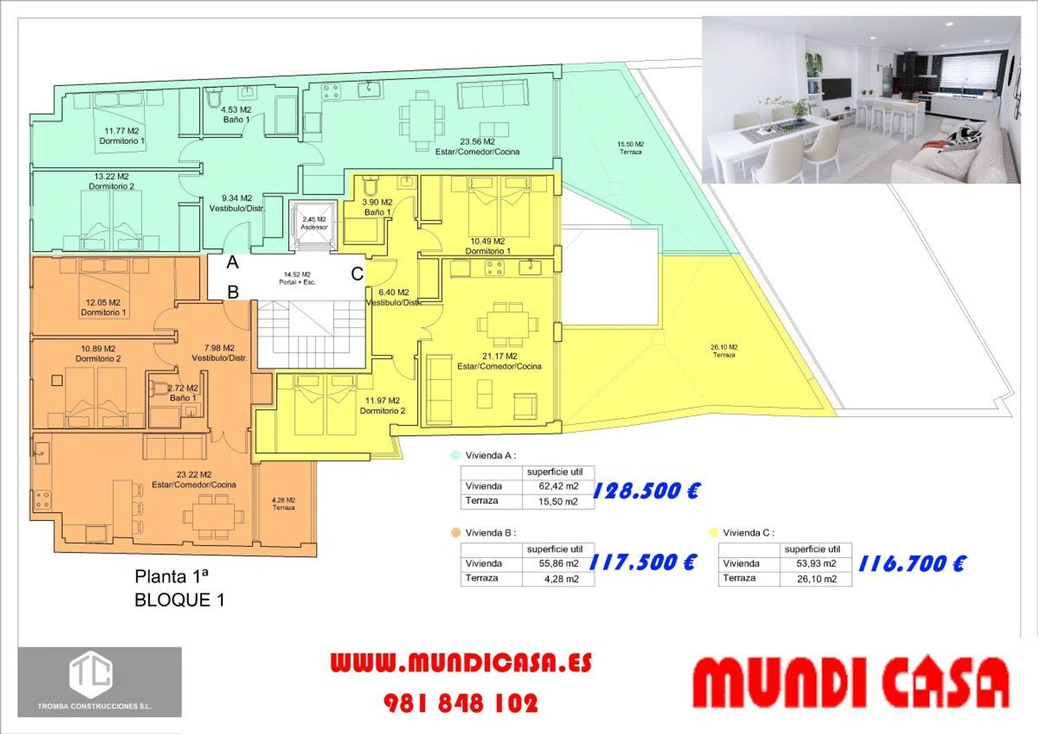 Desde esta preciosa terraza, podras disfrutar de unas vistas impresionantes y de unos momentos inolvidables Situado en un entorno tranquilo, al lado de unas preciosas calas muy bien comunicado con los principales nucleos. El edificio donde se ubica la vivienda se encuentra en el centro del pueblo costero de Escarabote. La vivienda tiene 2 dormitorios, 1 bañosala-cocina americana, trastero y la terraza de 26m2. El precio incluye muebles de cocina y trastero. Los garajes son opcionales. INFOGRAFIA SIMULADA.
