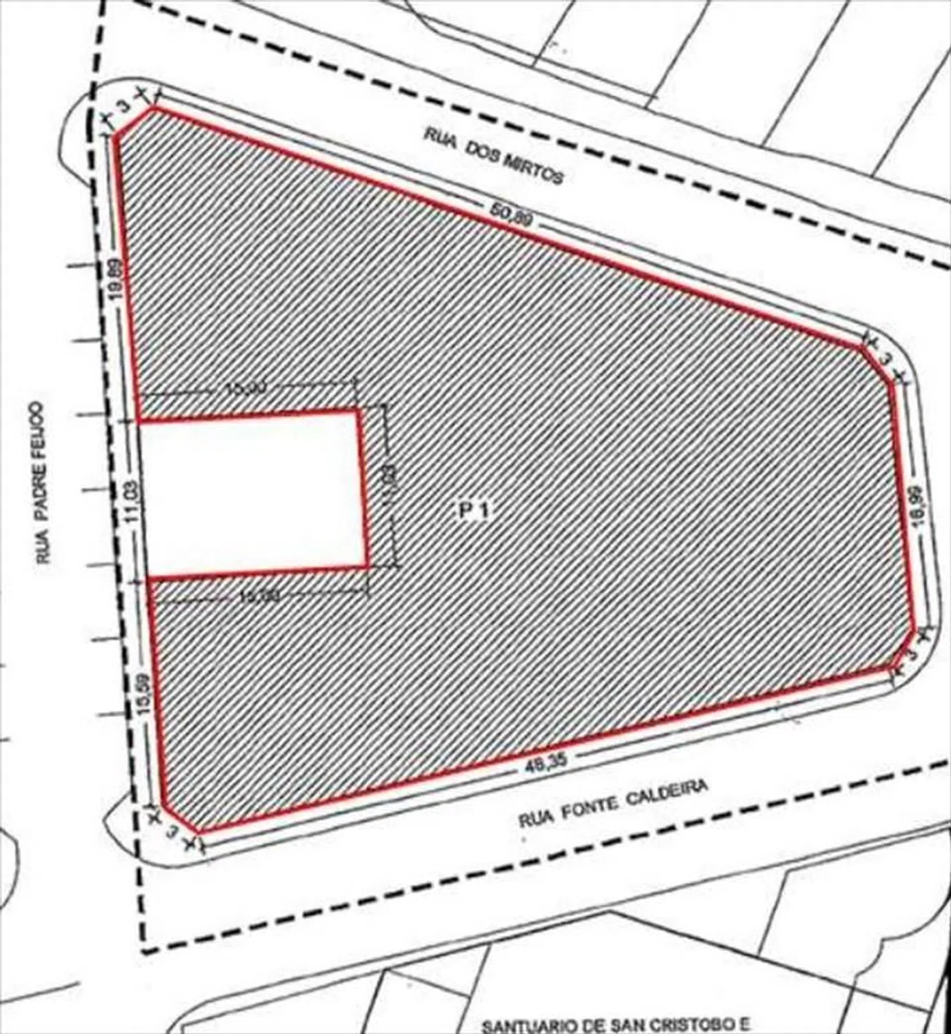Suelo entre C/ Fonte da Caldeira y C/ Dos Mirtos, Carballo (A Coruña) Finca Registral 44012 Ref. Cat: 4250520NH2845S0001DR. Superficie registral y catastral: 1.682 m²s Suelo Urbano Consolidado Ordenanza zonal 2. Zona residencial intensiva - Vivienda colectiva Tipología edificatoria: Edificación colectiva en manzana cerrada compacta y manzana cerrada con patio. Alturas permitidas: B+3 Edificabilidad máxima orientativa según nota simple: 8.380, 30m²t (la edificabilidad real se reducirá al menos un 10% en función de los patios que se proyecten). Usos compatibles: Podrán ocupar el 100% de la edificación cumpliendo las condiciones de su uso, y de la ordenanza residencial intensiva. Entre otros: Servicio terciario: Hotelero y Residencial comunitario, Comercial categoría A, B e C, Administrativo todas las categorías. El uso comercial en categoría B tiene un límite de superficie de 2.500 m2 Algunos de los inmuebles comercializados a través de ABANCA INMOBILIARIA tienen instaladas diversas medidas de seguridad, tales como alarmas, puertas de seguridad, etc? , que no forman parte de la oferta de venta y por lo tanto, no serán objeto de transmisión junto con el inmueble, procediéndose a su retirada, de forma previa a la formalización de la escritura de compraventa.
