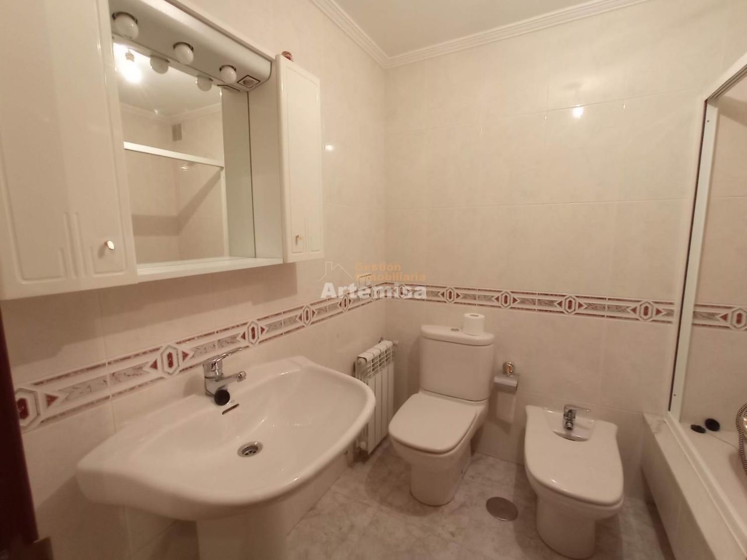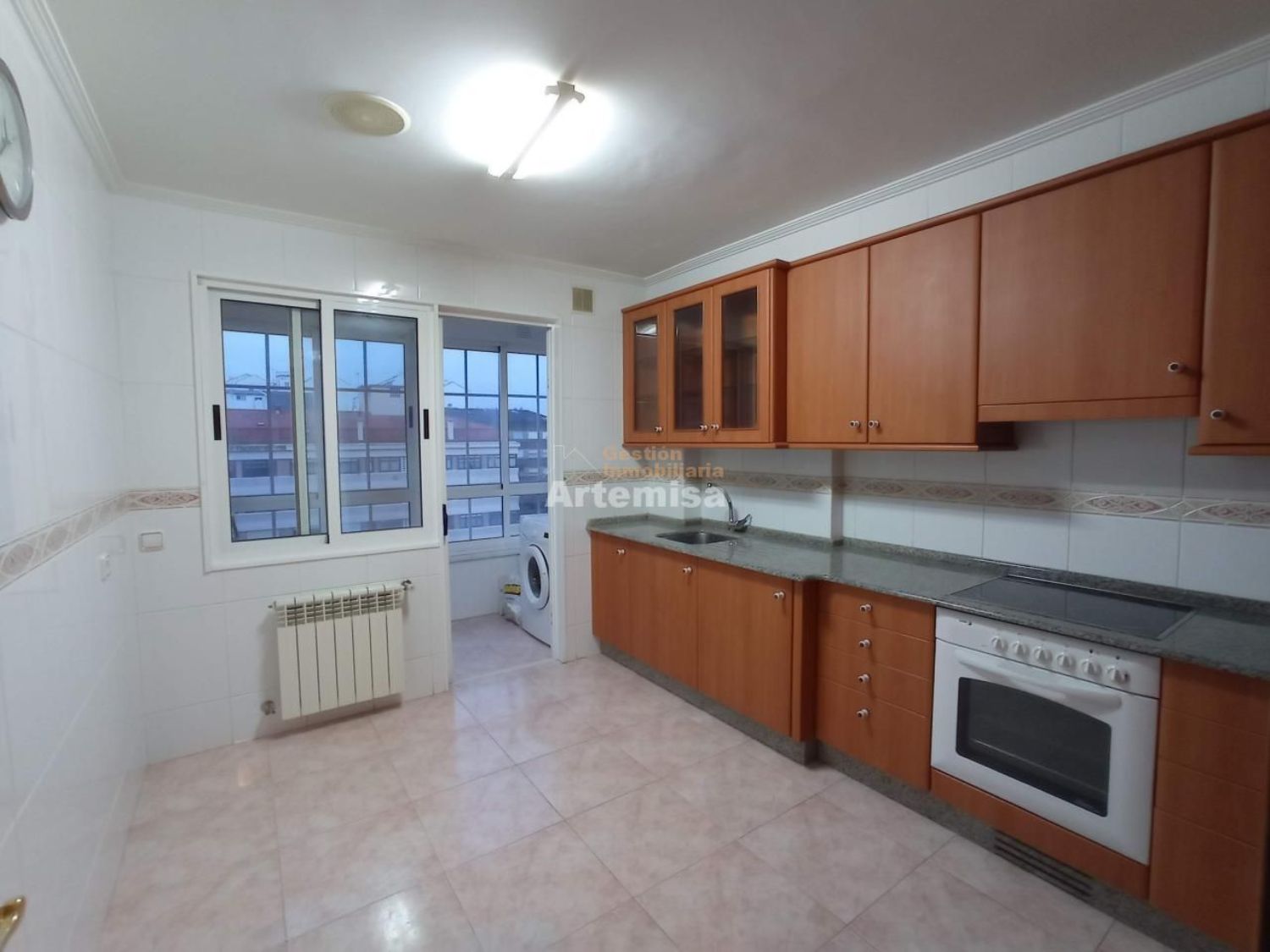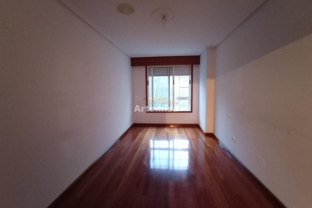 Piso sin muebles en alquiler de 95m2, con 3 habitaciones, 2 baños, salón, cocina amueblada y terraza lavadero. Suelos de tarima y plaqueta, ventanas de aluminio doble. Dispone de calefacción, ascensor trastero y plaza de garaje.