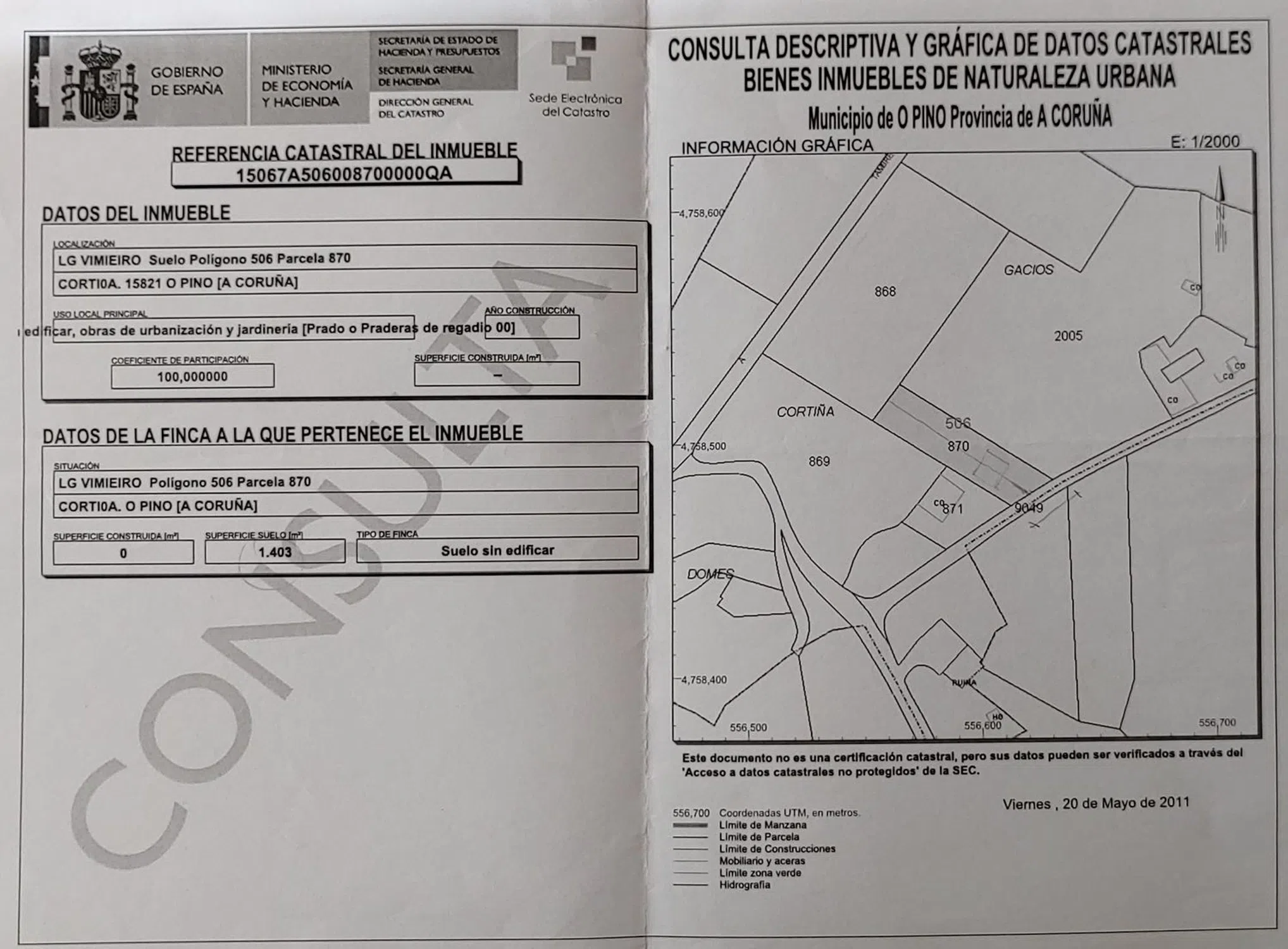 ¡ESCAPA DE CONFINAMIENTOS, NO HAY POR QUE ESTAR ENCERRADOS! Finca rústica en el corazón de Galicia y en plena naturaleza, donde poder construir una o dos casas, poner un bungalow, un fin de semana, un huerto, una piscina,.. . ¡POR EL PRECIO DE UN COCHE! , que con el paso de los años pierde valor y no te proporciona ni techo, alimentos ni libertad. La finca se encuentra a tan solo 20km de Santiago de Compostela, a 15km del aeropuerto (SCQ) y a 20km de la estación ferroviaria de Curtis. ¡Y TODO ESTO POR TAN SÓLO EL PRECIO DE 39.900€! Número de coordenadas: 42º58'37.1''N 8º18'21.0''W ¡ESCAPE FROM LOCKDOWN! Rustic property situated in the heart of galicia, in nature, where you can build one or two houses, build a bungalow, grow a garden, build a pool,.. . FOR THE PRICE OF A CAR! , which loses its value over the years and does not provide you with a rooftop, food or freedom. The property is situated only at 20km from Santiago de Compostela, 15km from the airport (SCQ), and 20km from the train station of Curtis. ALL THESE FOR ONLY 39.900€! Number of coordinates: 42º58'37.1''N 8º18'21.0''W.