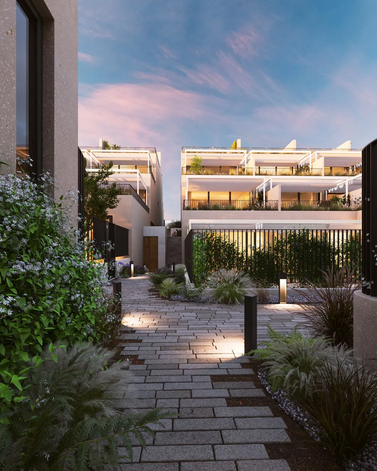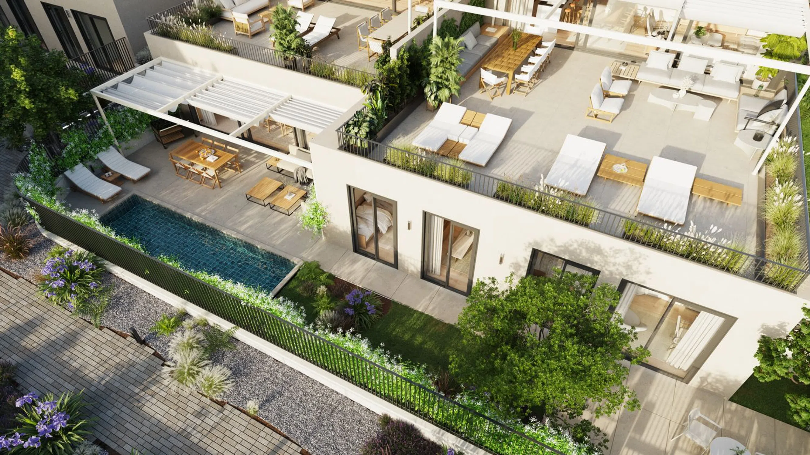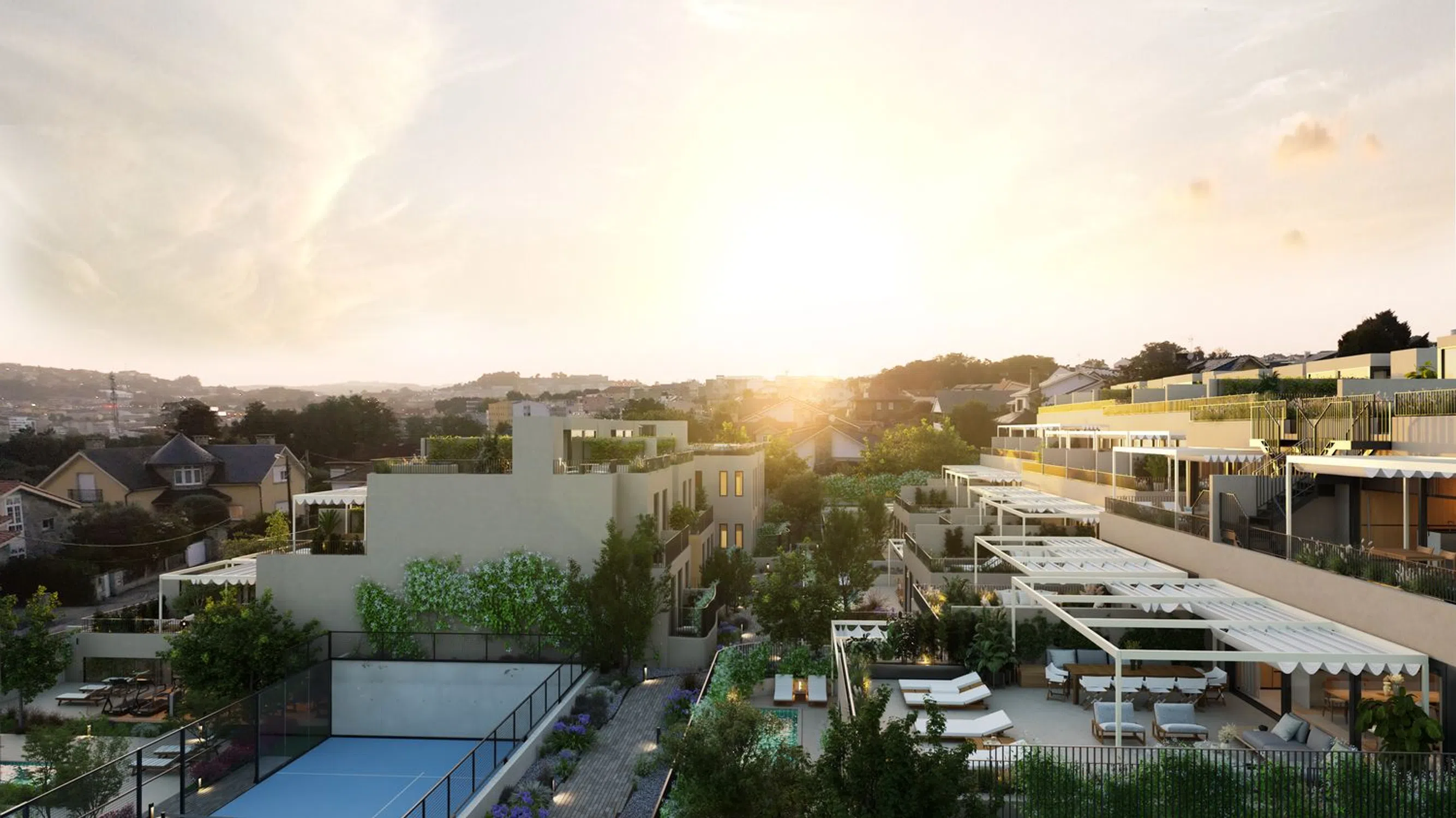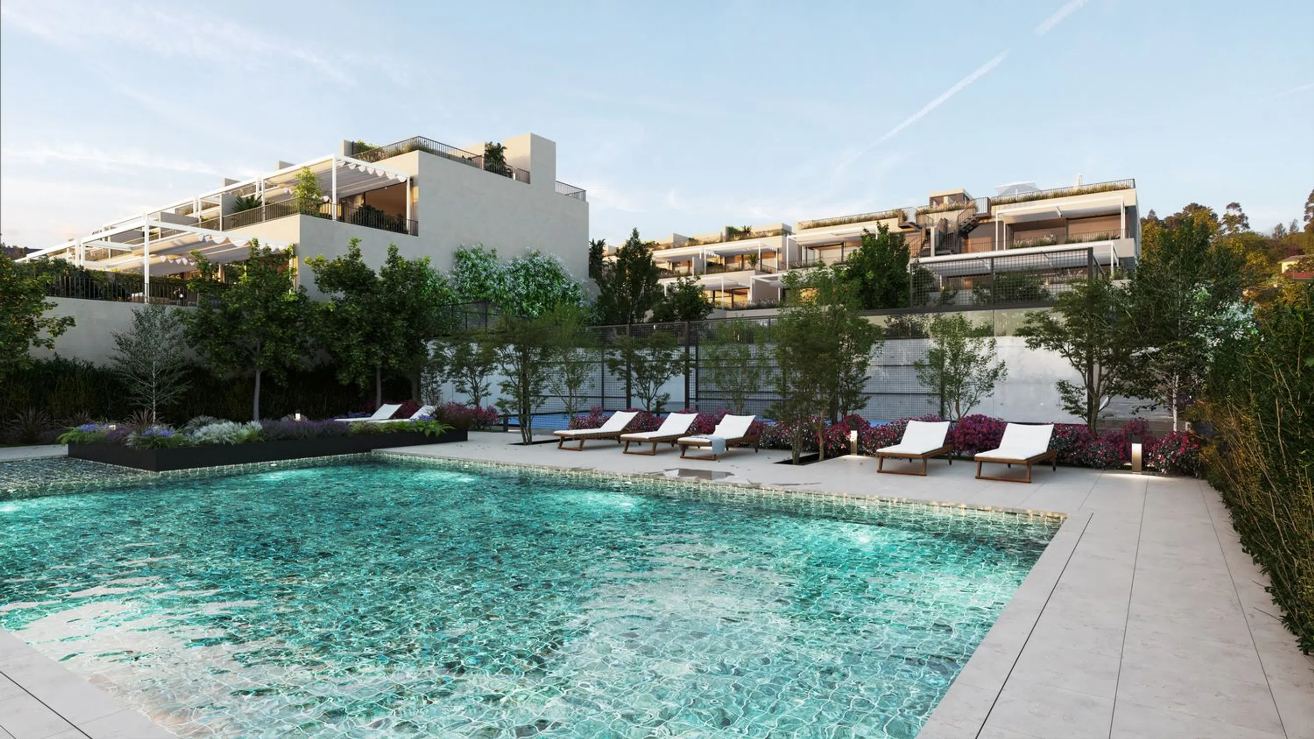 Newly constructed residences with a garden or terrace offer an exclusive real estate opportunity located in the prestigious area. Designed for those seeking privacy, comfort, and a sophisticated lifestyle, these homes offer over 160 m² of living space with private terraces or gardens, high-quality finishes, and sustainable technology. The architecture blends with the natural surroundings, featuring large windows that frame spectacular views. The community offers exclusive amenities such as a swimming pool, gym, sauna, and paddle tennis court, all surrounded by lush gardens inviting relaxation. Each residence includes two parking spaces and a storage room. Ecology and health go hand in hand, with BREEAM certification highlighting standards in energy, health, materials, and pollution, among other criteria. The homes feature superior insulation, exceeding current regulations, with notable energy-efficient aerothermal heat pumps and underfloor heating. The development offers 12 duplexes with a rooftop area, 8 homes with expansive terraces, and 5 ground-floor residences with significant garden space.