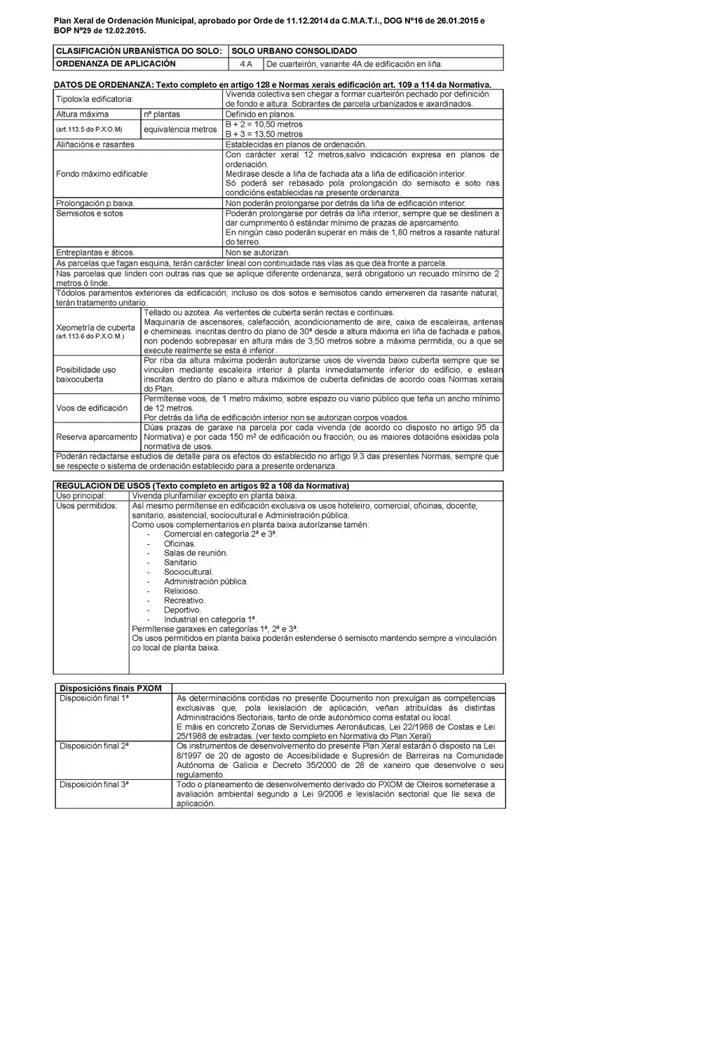 Parcela de 490 m2 urbana y edificable, con excelente ubicación en la localidad de El Seijal - San Pedro de Nos en el Ayuntamiento de Oleiros. Muy próxima a todos los servicios, supermercados, farmacias, Centro de Salud, a la costa con espectaculares playas de Oleiros y a 10 minutos en coche al centro de La Coruña. El terreno cuenta con una calificación urbanística de " SUELO URBANO CONSOLIDADO" y una ordenanza de aplicación 4A, que le permite construir vivienda multifamiliar excepto en la planta baja (uso comercial). Asimismo, los usos hoteleros, comerciales, de oficina, educativos, sanitarios, asistenciales, socioculturales y de administración pública están permitidos en edificios exclusivos. Como usos complementarios en la planta baja también están autorizados: - Comercial en 2da y 3ra categoría. - Oficinas. - Salas de reuniones. - Sanitario -Sociocultural. - Administración pública. - Religioso. - Recreacional. - Deportes. - Industrial en 1ª categoría. Adicionalmente se permiten sótanos y semisótanos (garajes en 1ra, 2da y 3ra categoría). Los usos permitidos en la planta baja pueden extenderse al semisótano mientras se mantenga el enlace con las instalaciones de la planta baja.