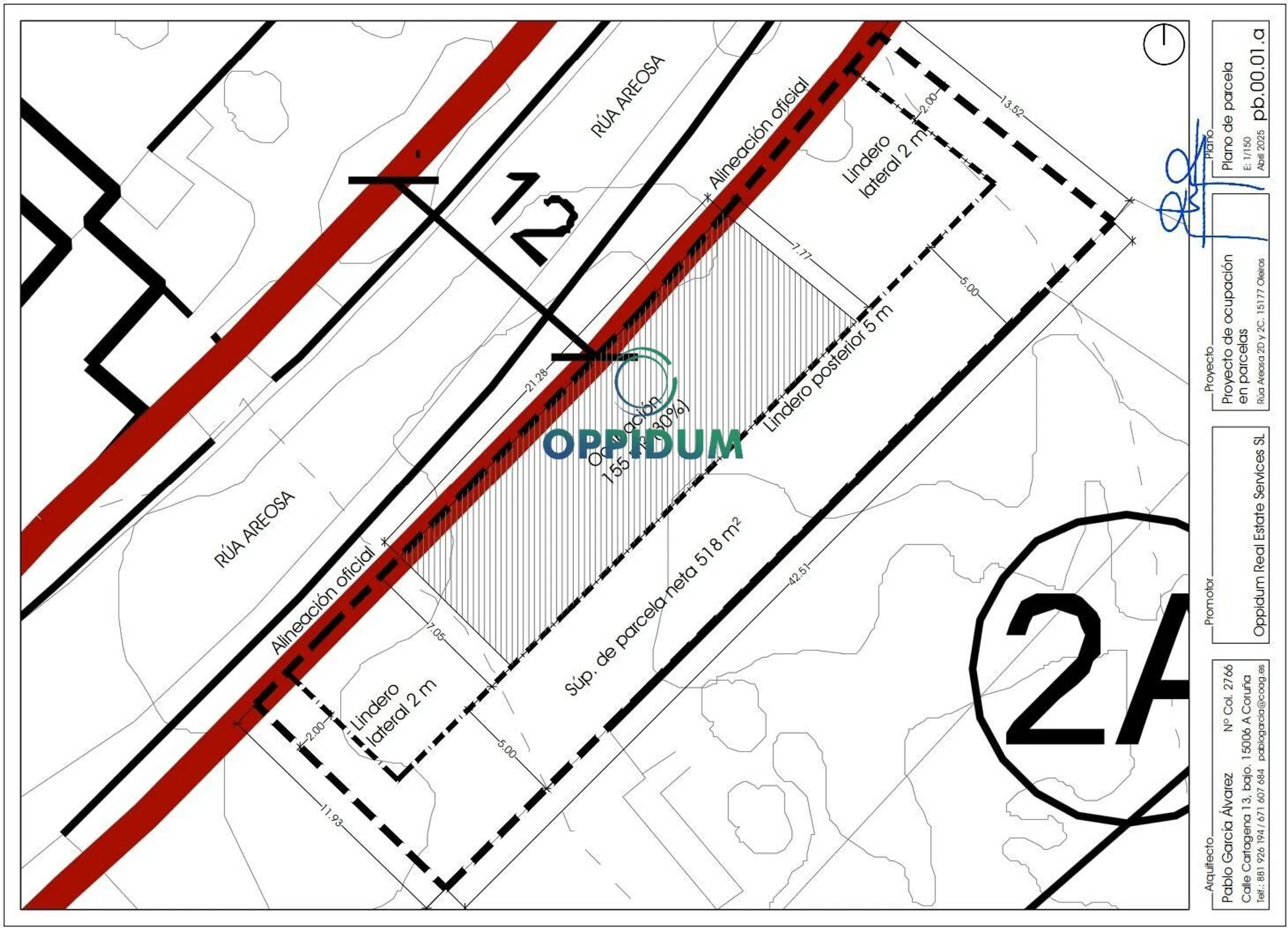 Suelo urbano de 791 m2 en Mera. Parcela cuadrada a 1 km de las playas de Mera y su Núcleo urbano. Tiene una parada de autobús a 50 m. Está ubicada a 2 km de la entrada de la Via Ártabra que comunica los núcleos urbanos de los Concellos costeros de Oleiros y Sada con la N-VI y en breve con la AP-9 por lo que mejorará considerablemente su comunicación tanto con Coruña como con otras urbes de Galicia y de fuera de la comunidad. Es una parcela ideal tanto para primera residencia como para una segunda residencia por su cercanía a las playas de Mera como su cercanía a Coruña de la que dista 10 km. Ordenanza 2A Altura de cornisa 7 m Número de plantas B+1 planta Aprovechamiento bajo cubierta Se permite y computa Frente mínima de parcela 6 m Retranqueos 2 m a linderos y 5 m al posterior Ocupación máxima 30% Parcela mínima 300 m2 Inclinación máx. de cubierta 30º Gestión urbanística y desarrollo No es necesario Cesión de terrenos Cesión para viales En el frente de parcela Urbanización El frente de parcela y la cesión En Oppidum te acompañamos y asesoramos en todo el proceso de compra, financiación, reforma y potenciales ayudas. Este anuncio no es vinculante, puede contener errores. Se muestra a título informativo y no contractual.