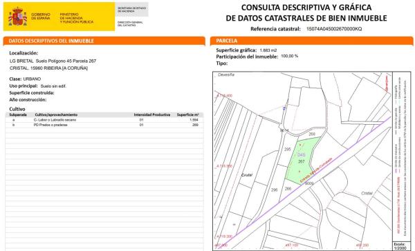 Solar en venta en Sirves, Ribeira, A Coruña. TERRENO URBANO DE 1.883 M2 CON BUEN ACCESO, SUSCEPTIBLE DE REALIZAR SEGREGACIÓN PARA 2 SOLARES. En los últimos años se ha convertido en una zona residencial muy tranquila, situada en una de las carreteras principales de la zona por lo que cuenta de estar arropada de vecindario, con las ventajas de estar a 2 minutos en coche del "Parque Natural das Dunas de Corrubedo e Lagoas de Carregal e Vixán" y a menos de 8 minutos del centro de Ribeira. También cuenta con bares y restaurantes cercanos. Entorno y comunicaciones Entorno urbanizado y con un vecindario muy agradable. Esta es una oportunidad perfecta para disfrutar y vivir en un entorno único que a su vez huye del bullicio del centro de la ciudad.