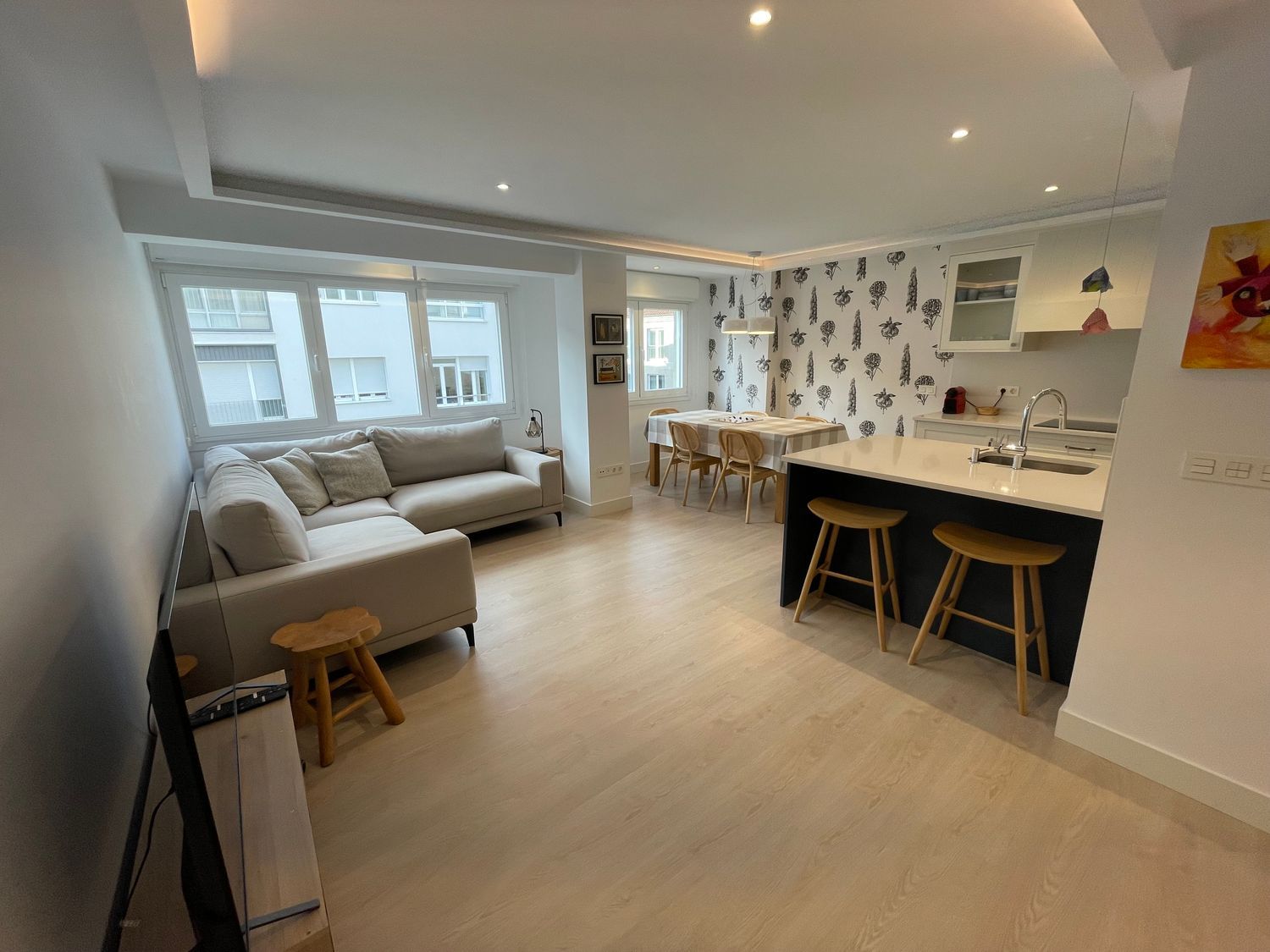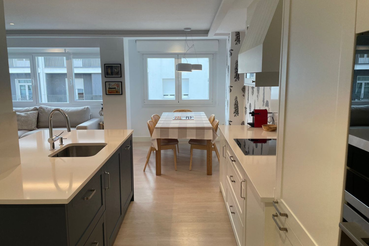 Piso de lujo, recién reformado con las mejores calidades y ubicado en pleno centro de Santiago.Exterior, con una impecable distribución y muchísima luz, el piso está dotado de un amplio salón/comedor/cocina totalmente equipado, tres dormitorios, dos amplios y lujosos baños y una zona adicional de estudio. Disfruta del comfort del eficiente sistema de calefacción de suelo radiante y la tranquilidad de un edificio muy familiar.Situado en la “milla de oro” de Santiago, vivir aquí significa tener a tu alcance una amplia oferta de servicios y estar cerca de todo. Se encuentra a 10 minutos andando de la plaza del Obradoiro. Flexibilidad en la duración, con posibilidad de media estancia, abstenerse estudiantes.