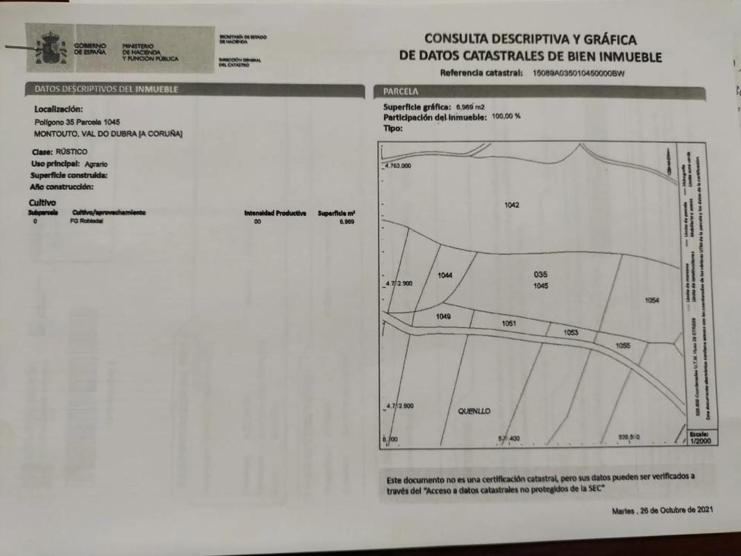 Solar sito en C/ Corredoira, 72 de Val do Dubra (A Coruña) Ref. Catastral: 7739709NH2673N0001LP Superficie registral: 769,5 m² Suelo Urbano Consolidado Uso característico: Residencial colect...