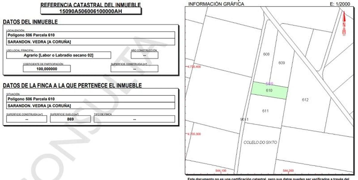 TIPO DE INMUEBLE Tipo Inmueble: Solar BARRIO Y ZONA Ayuntamiento: Vedra Zona: Extrarradio CARACTERÍSTICAS DEL TERRENO Superficie de la parcela: 4.739 m2 Frente principal de la parcela 43 met...