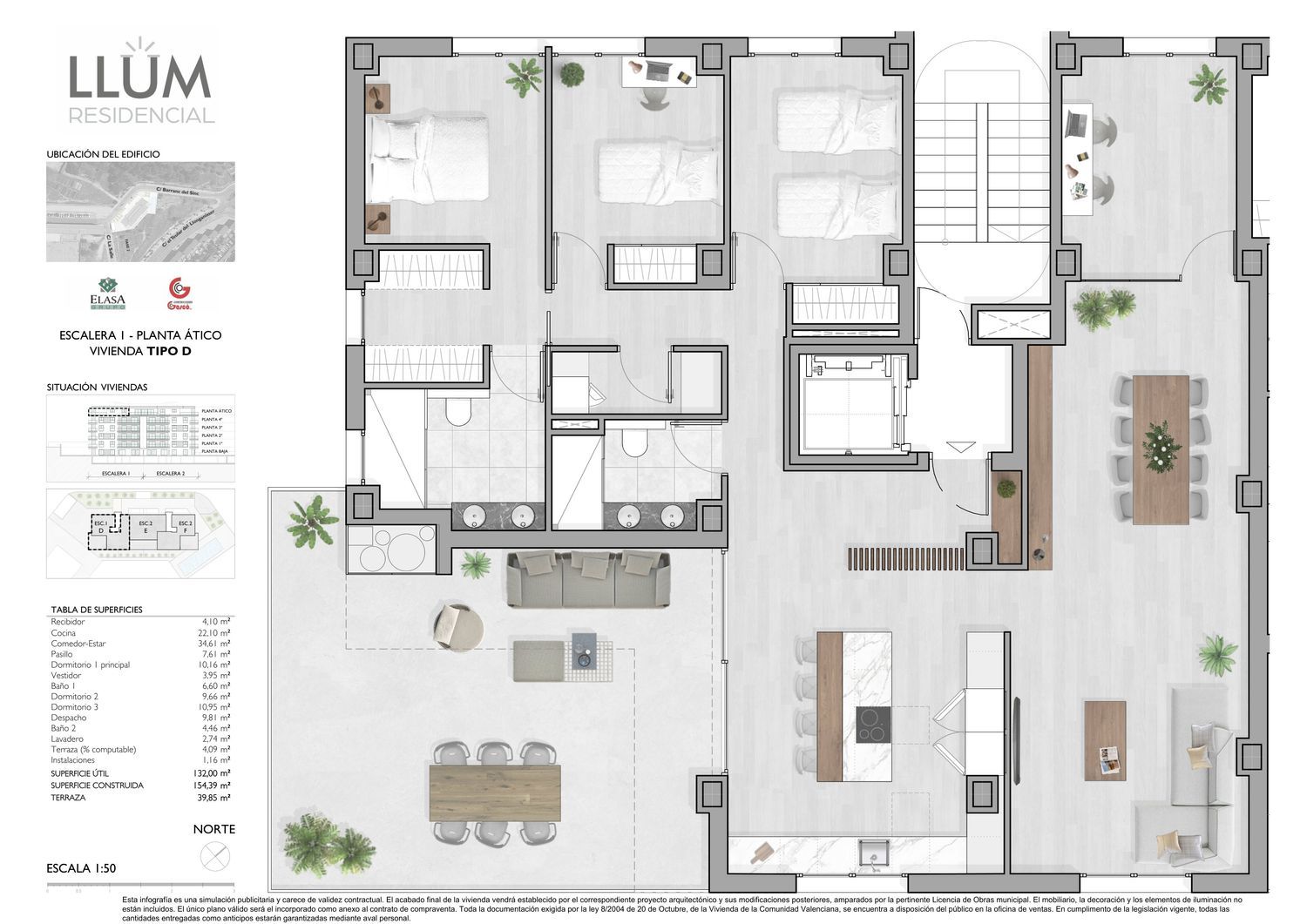 El residencial de la luzLa experiencia de los últimos tiempos nos ha demostrado que necesitamos un hogar más espacioso, más eficiente y, sobre todo, más luminoso.La luz natural regula nuestro sistema metabólico e incrementa nuestra salud emocional. La luz se ha convertido en un elemento imprescindible al que ya no queremos renunciar. LLUM RESIDENCIAL da respuesta a esta necesidad vital.Sus 24 viviendas han sido diseñadas para ofrecer la perfecta conexión entre el interior y la luz exterior (ventanales con la orientación adecuada, balcones y terrazas).Además, dispone de amplios espacios exteriores para disfrutar del sol y del aire libre: zonas comunitarias ajardinadas, solárium, piscina… Llum Residencial es un edificio dotado de la última tecnología, que garantiza tu comodidad, y te proporciona soluciones ecológicamente eficientes. La instalación de sistemas de aerotermia para la calefacción, la fachada con aislamiento SATE y las cámaras aisladas acústicamente, proporcionan un mayor confort y un ambiente más saludable, reduciendo además el consumo energético.Viviendas espaciosas, en las que se apuesta por la fluidez en la zona de día. La ausencia de radiadores y la integración de salones, cocinas y terrazas maximizan los espacios y la luminosidad. LLUM RESIDENCIAL es una promoción de 23 viviendas, con 3/4 dormitorios, plazas de garaje y espacios abiertos al exterior en una extraordinaria ubicación.Rodeado de un entorno natural espectacular, cerca del centro de la ciudad y de los servicios básicos para tu día a día y el de tu familia: colegios, institutos, supermercados, centros deportivos, de salud y de ocio.Bien comunicada por el acceso Norte de la ciudad, ofrece la posibilidad de disfrutar de la naturaleza en pleno núcleo urbano.