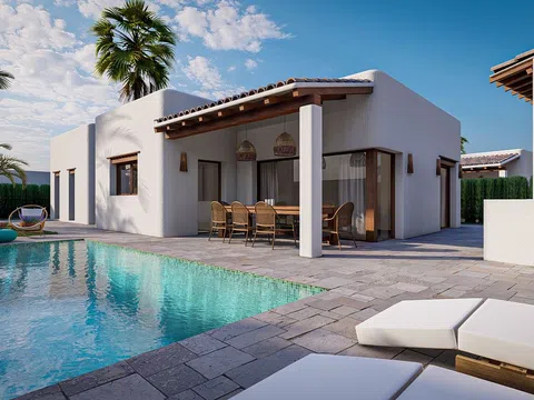 Nestled in one of the most peaceful and sunlit areas of the urban center of Alfaz del Pi, you'll find a stunning development of exclusive properties. This complex comprises five independent homes, each with its own parcel of land. The residences boast a modern design, reflecting elements of Ibiza-style architecture, and provide a serene retreat for its inhabitants.