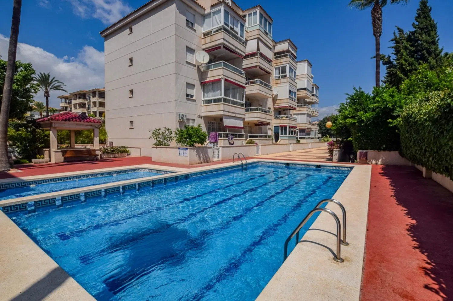 The well-maintained complex offers beautiful gardens and a lovely communal pool, ideal for relaxation. The apartment comes fully furnished, and while it does not include a parking space in the price, there are options available for purchase within the building. Given its unbeatable location near shops, restaurants, a golf course, and other leisure activities, as well as its active tourist rental license, this spacious apartment represents a fantastic investment opportunity for a large family or for anyone looking to generate extra income through vacation rentals when not in use.