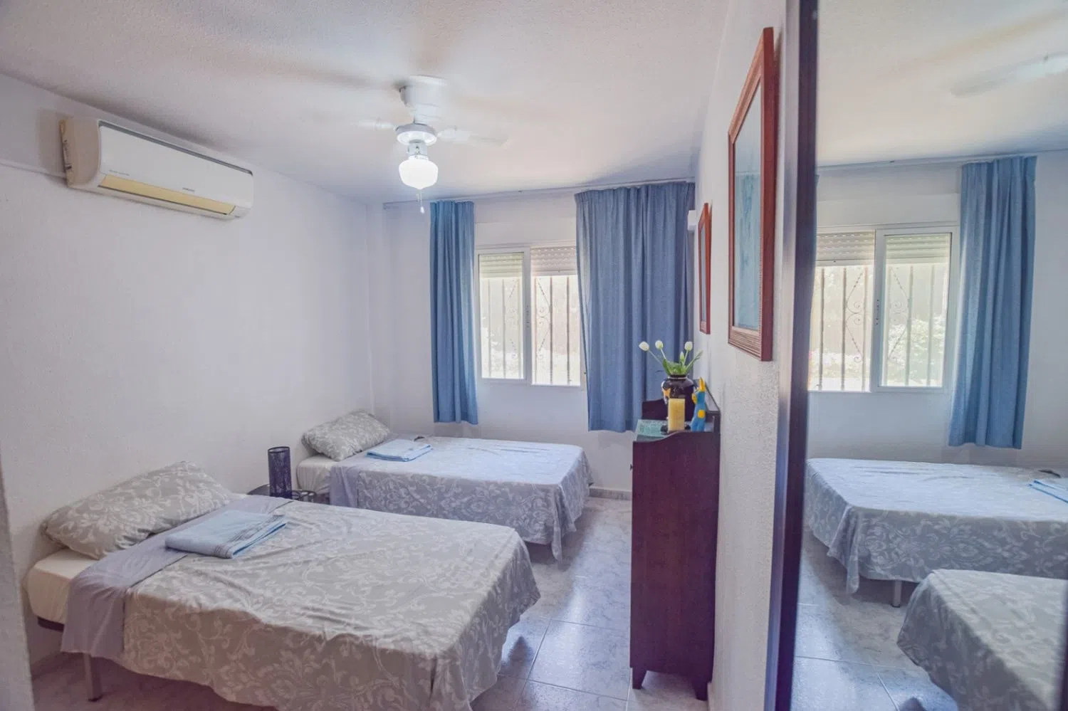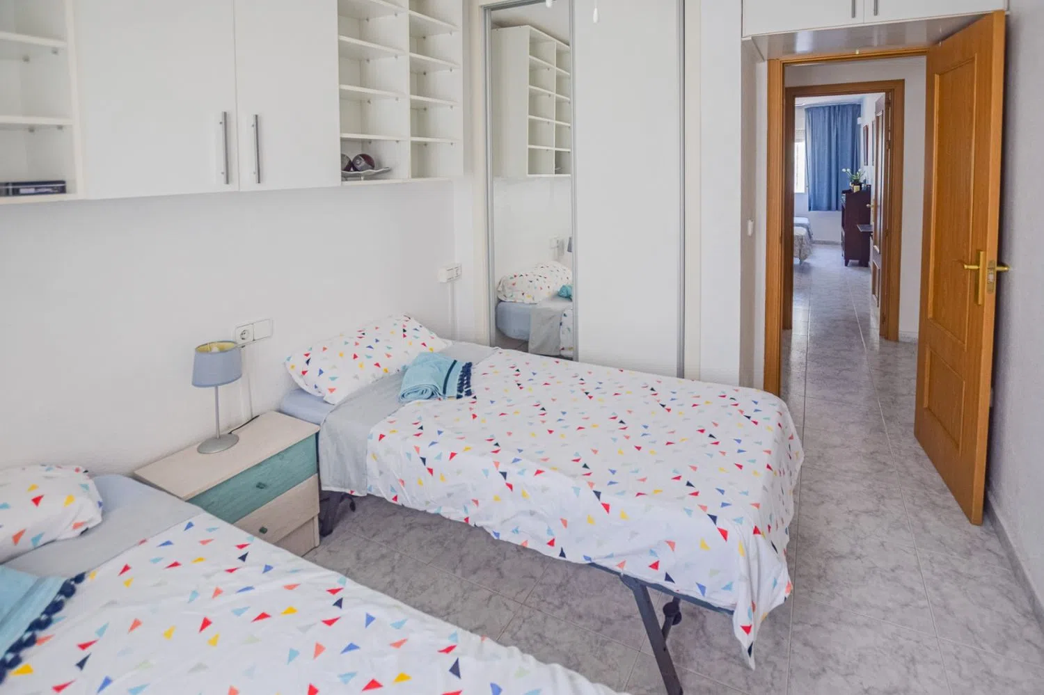 This fantastic and spacious corner apartment boasts a prime location in the heart of the area, just a short walk from the beach, shops, and essential services. It features three generously sized double bedrooms with built-in wardrobes and two bathrooms, along with a large living-dining room that opens onto a magnificent terrace, perfect for enjoying the pleasant weather with family and friends throughout the year. The independent kitchen is fully equipped for all your culinary needs.
