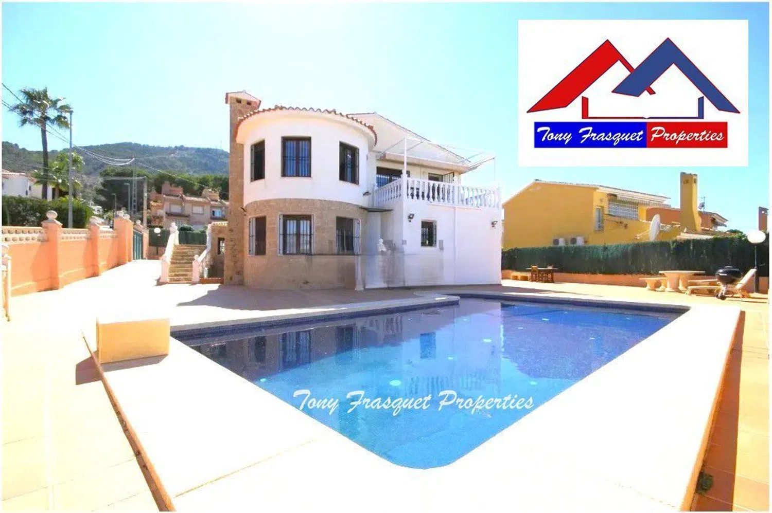 Stunning villa with a private swimming pool, located in a picturesque area. The residence is thoughtfully designed with two levels, each featuring independent entrances. The property is encircled by a lush garden, providing a serene atmosphere, and offers ample parking space for more than three vehicles, as well as barbecue facilities and several terraces for relaxation and outdoor enjoyment.