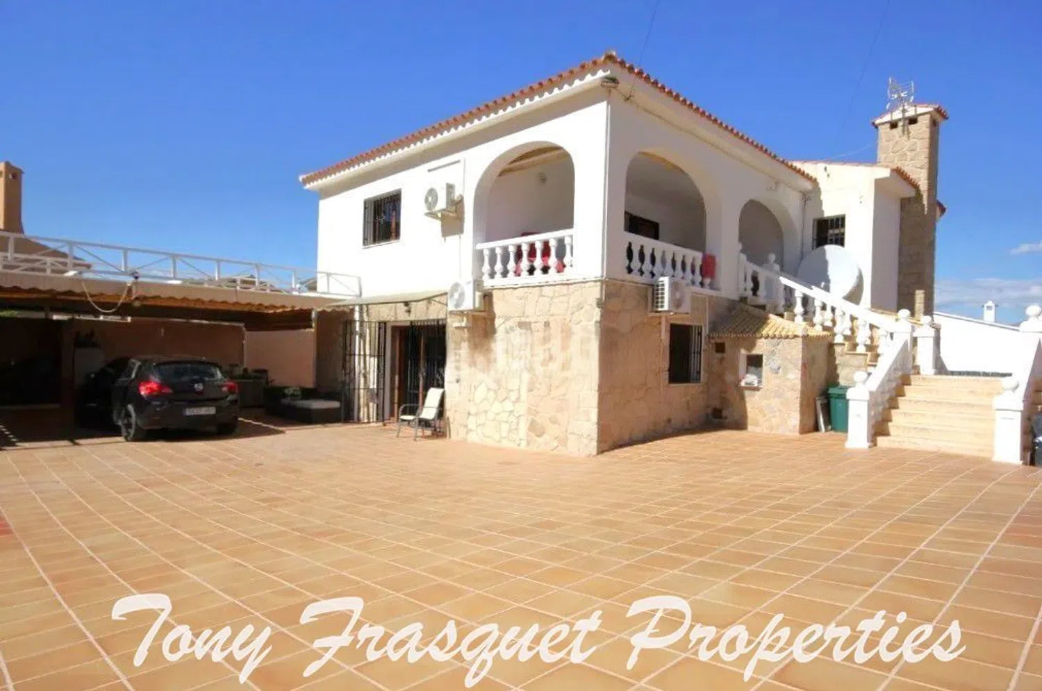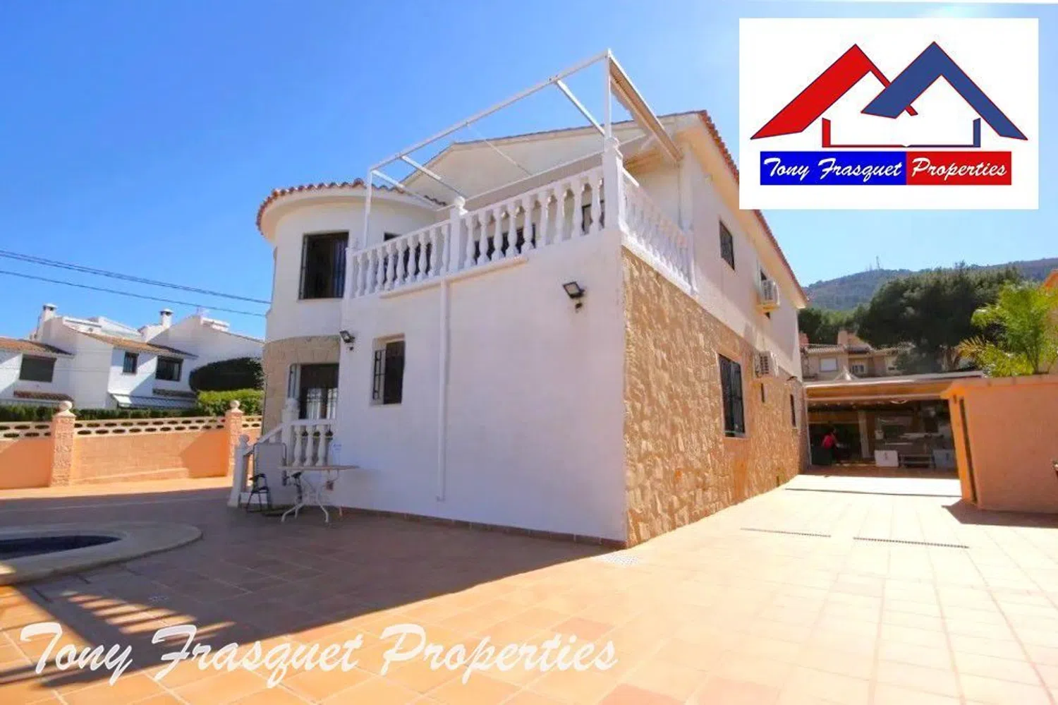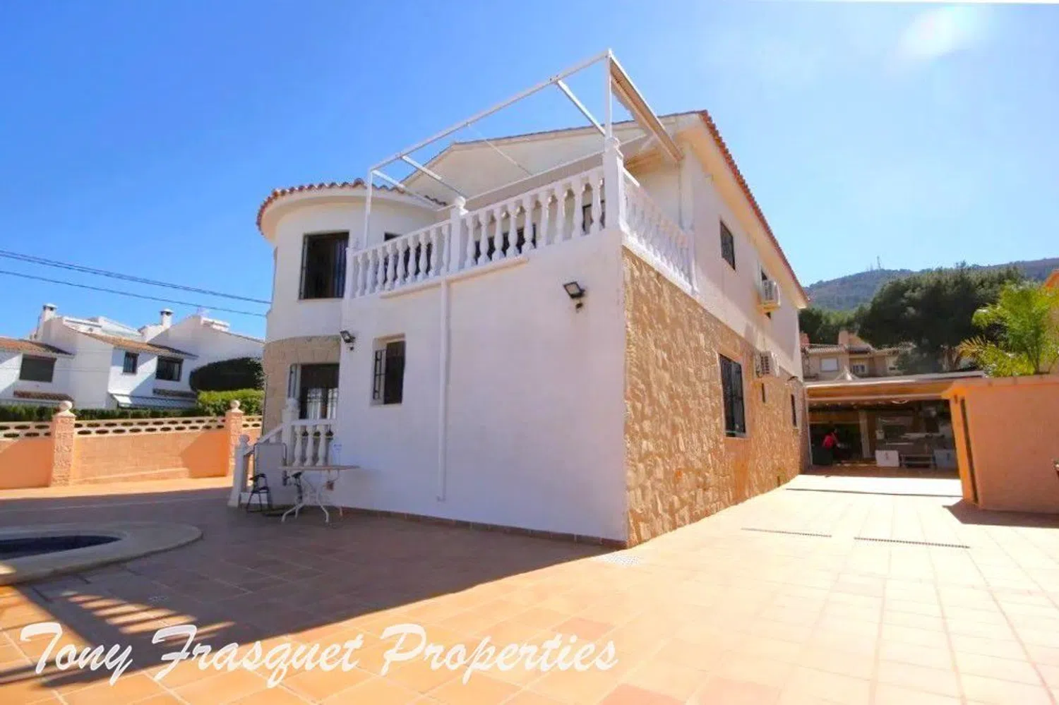 Ascending to the second floor, there is a well-appointed open kitchen that seamlessly connects with the living space, along with another toilet and two en-suite double bedrooms. The villa is equipped with air conditioning, heating, double-glazed windows, shutters, and a combination of ceramic tile and laminate flooring, ensuring both comfort and style.