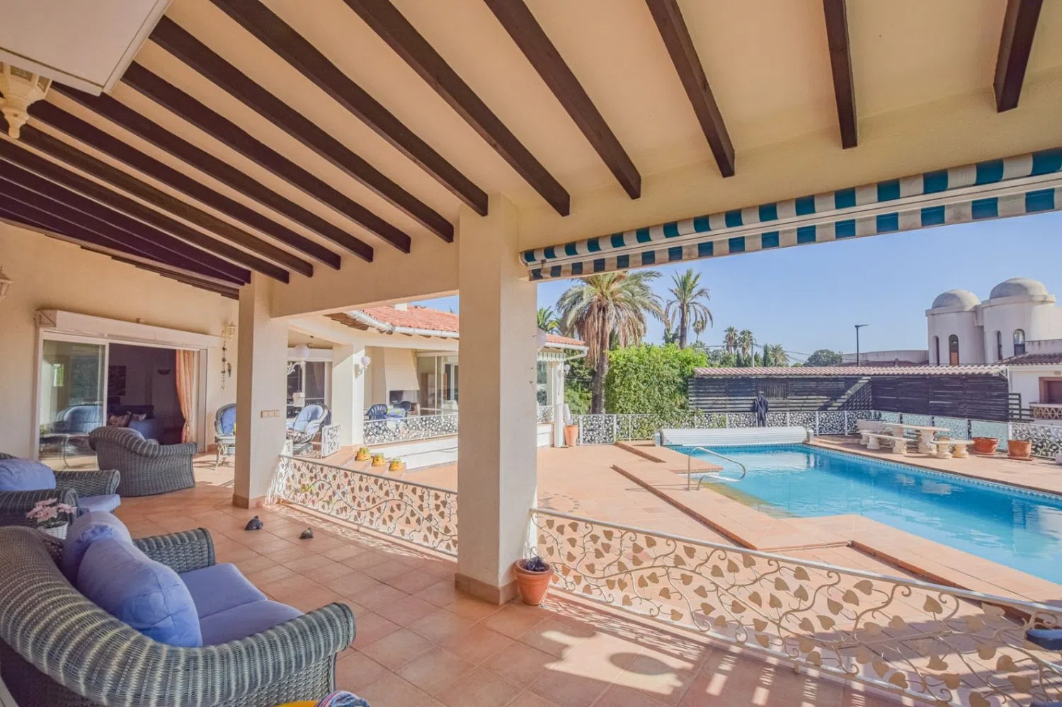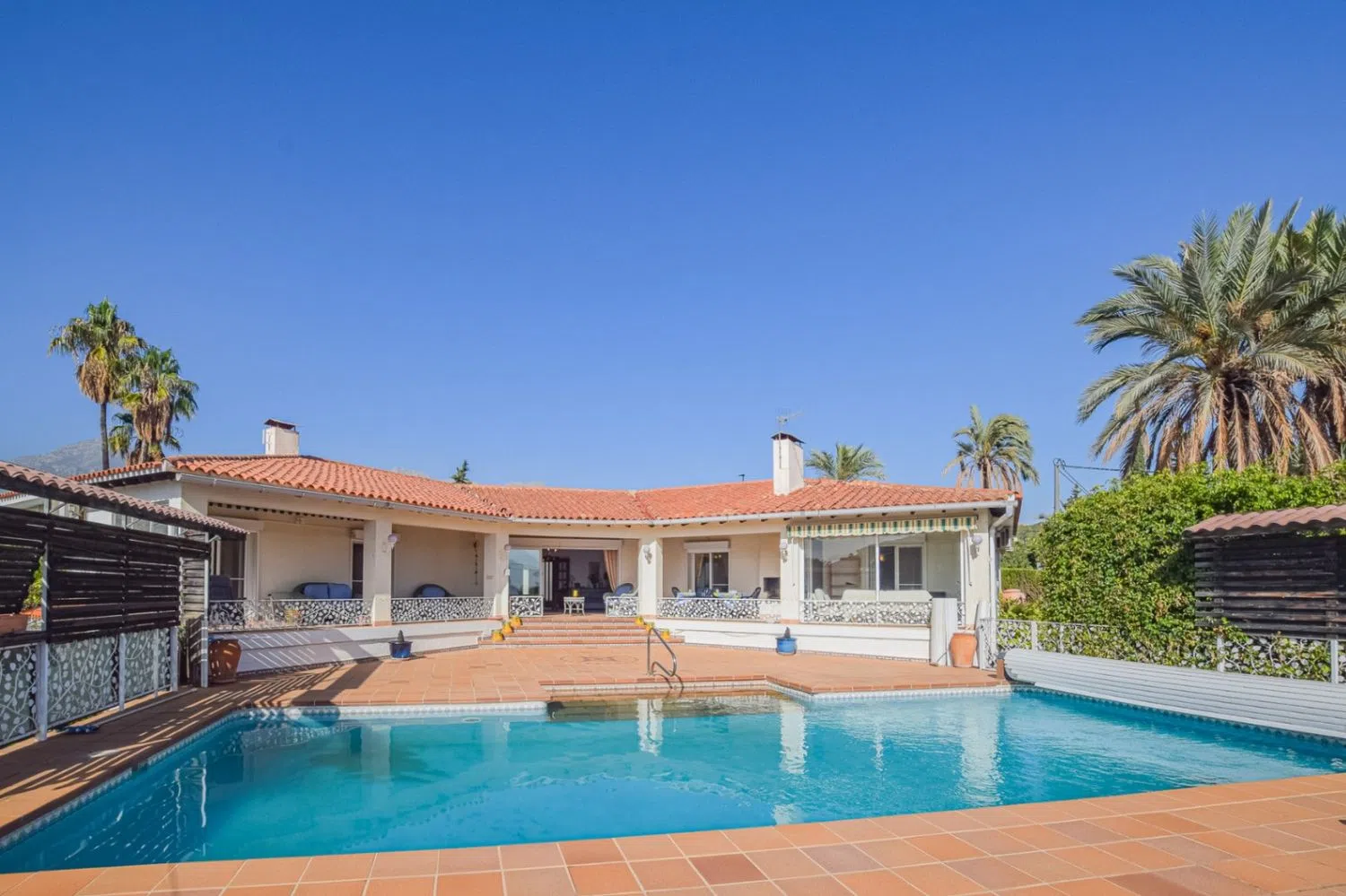We present an impressive single-story family villa, boasting 355 m² of constructed space set on a generous flat plot of 1,646 m² in the most desirable area of Alfaz del Pi. This charming residence is thoughtfully designed, featuring a welcoming entrance porch, a spacious foyer, a large living-dining area, an independent kitchen, a hallway, six comfortable bedrooms, three bathrooms, a cozy lounge, and a covered terrace. Additionally, it includes a storage room and a closed garage.