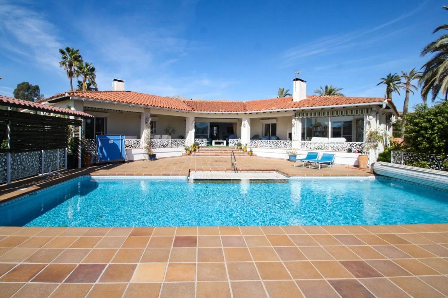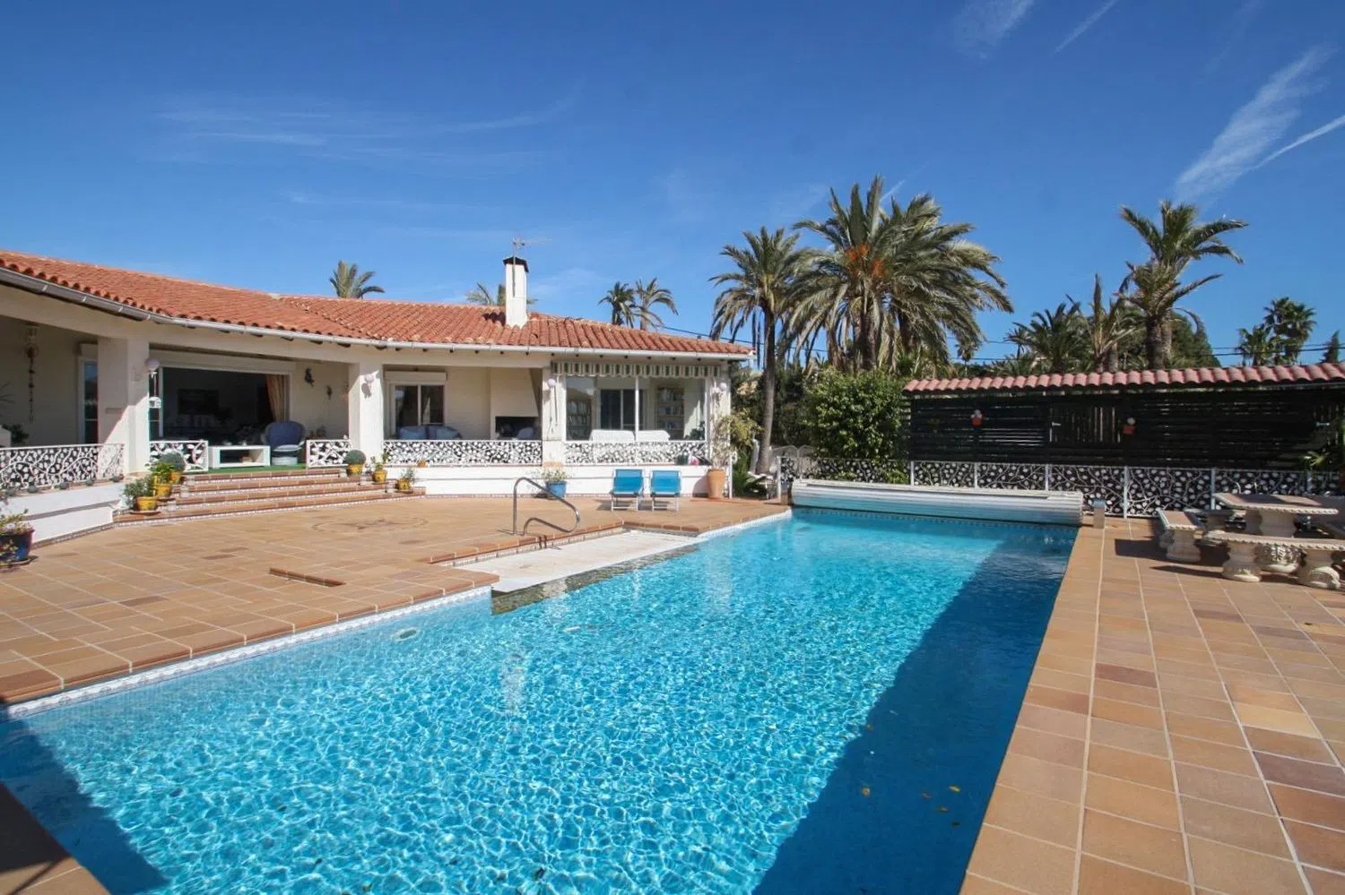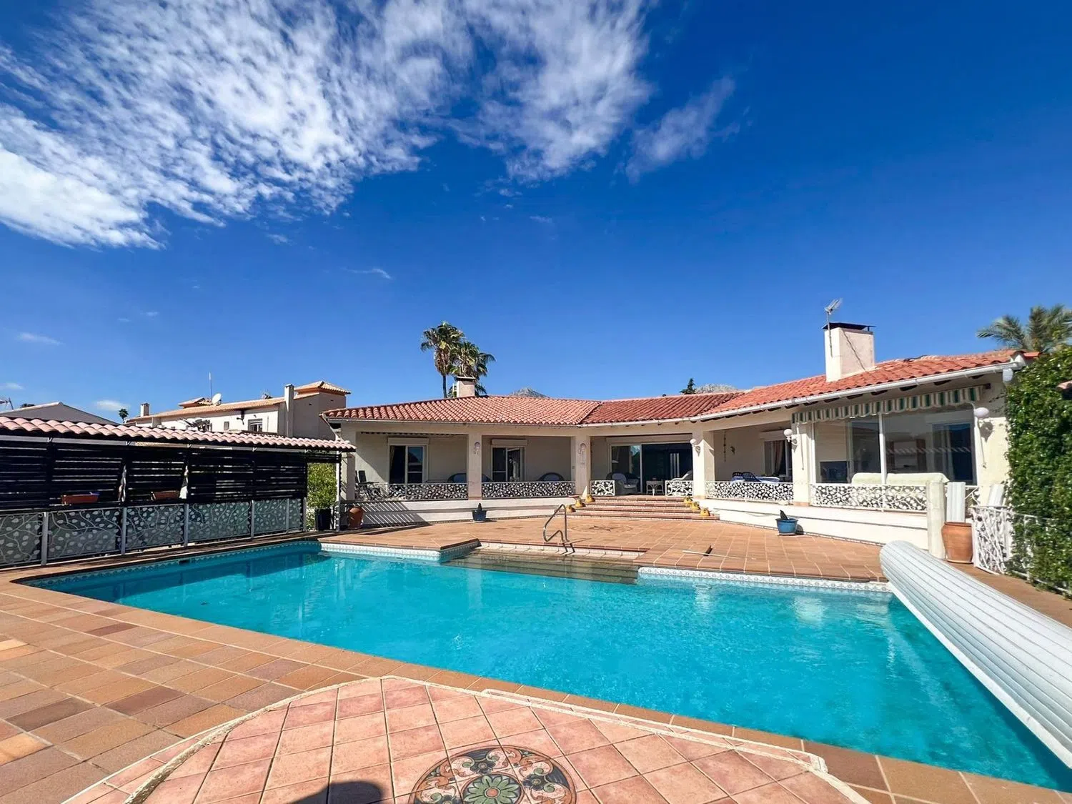 We present this stunning villa, featuring 284 m² of constructed space on an expansive plot of 1,758 m², situated in a serene area. This single-level residence provides all the comforts needed for a relaxed and enjoyable lifestyle. Upon entry, you are welcomed by a spacious living room with a fireplace, perfect for creating a warm and inviting atmosphere.