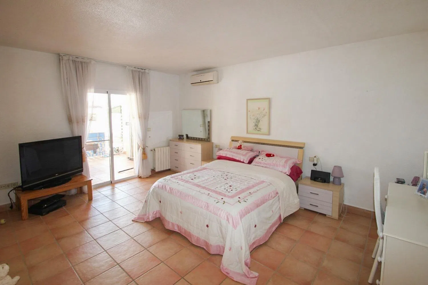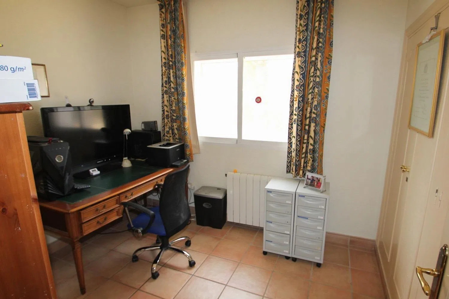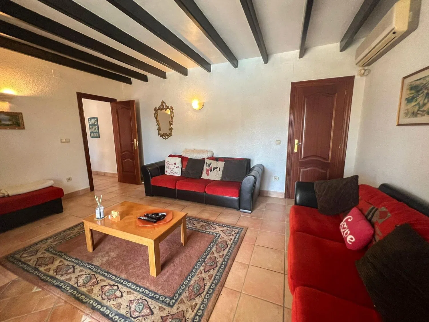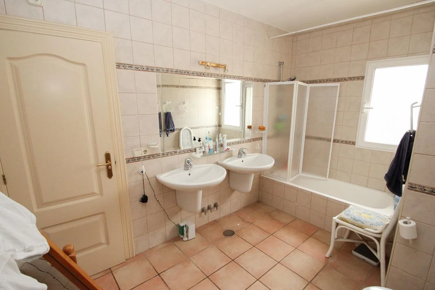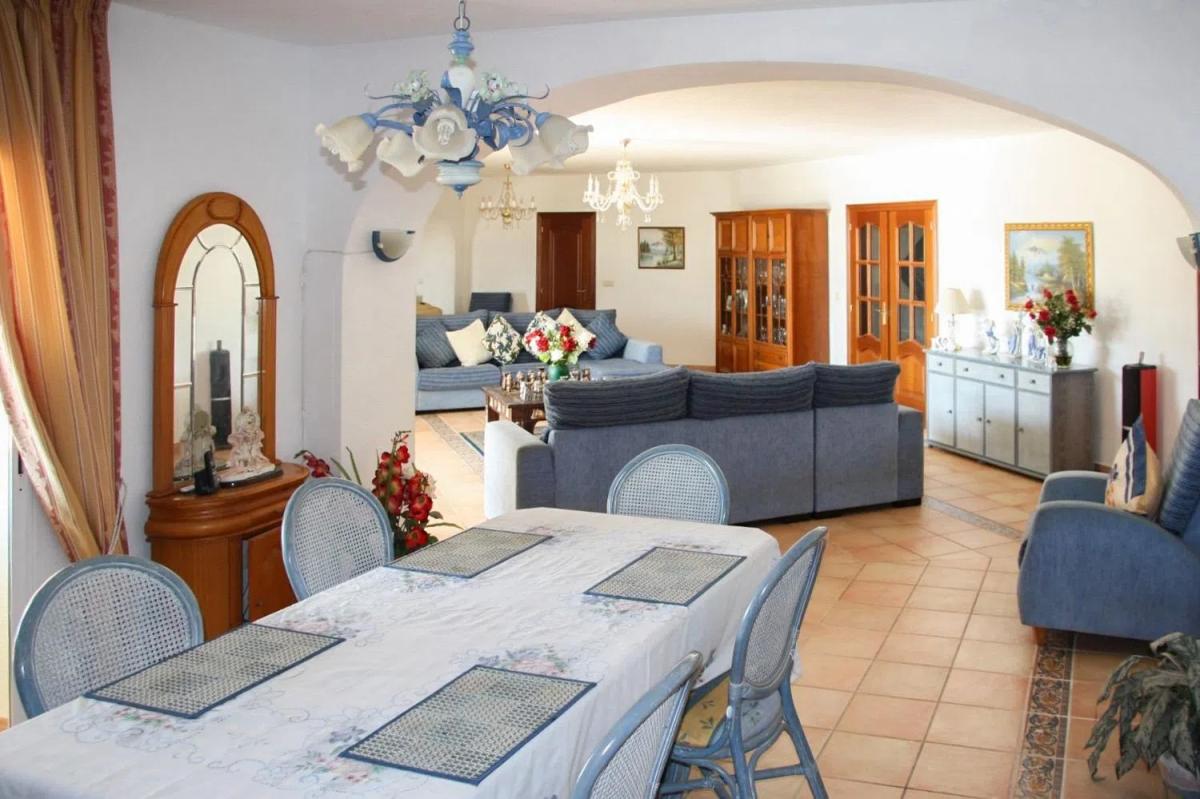 The villa comprises 6 generously sized bedrooms and 3 full bathrooms, offering ample space for a large family or for hosting guests. Additionally, it includes a storage room and a closed garage for added convenience. The property is equipped with central heating via radiators and air conditioning, ensuring optimal comfort in every season.