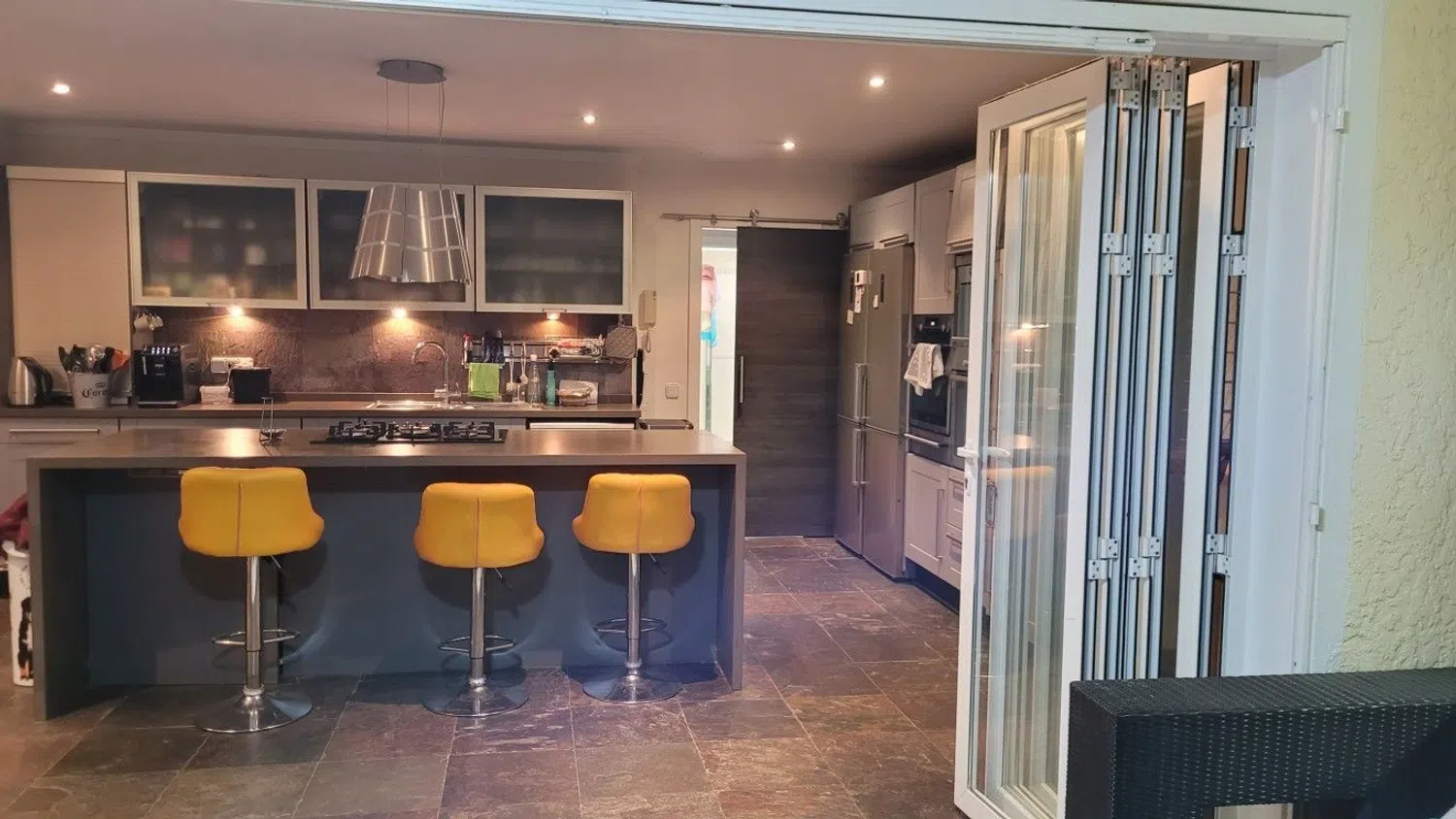 On the lower level, you'll find two more bedrooms, a bathroom, a home office, and the main kitchen, which leads directly to the terrace and a pool area. Outside, the property boasts a swimming pool, an outdoor barbecue, and a social dining area ideal for entertaining. It also includes a pergola, a citrus garden with a children's play area, a pizza oven, a sauna, a bar, additional bathroom facilities, two outdoor showers, and a wine cellar.