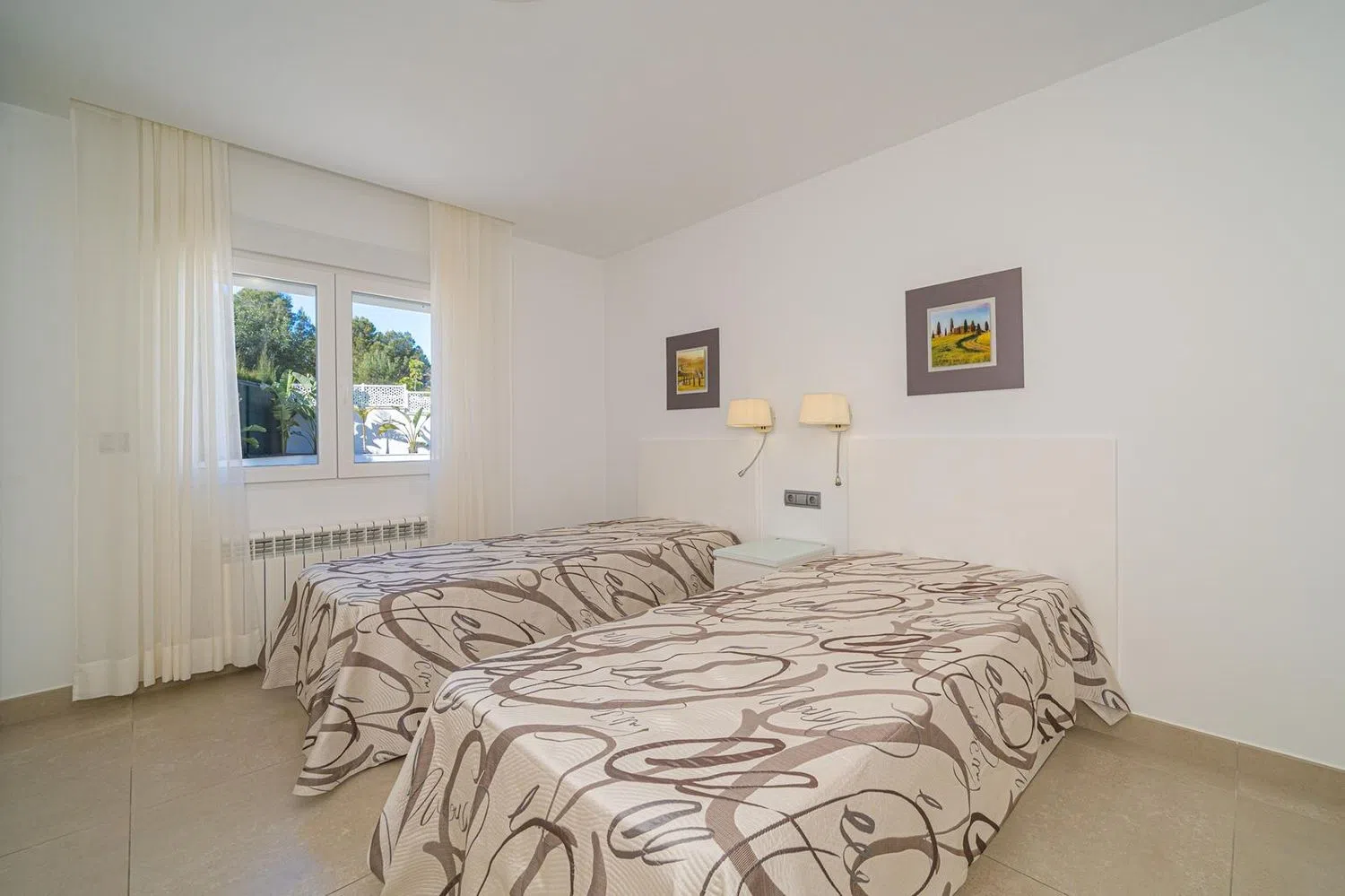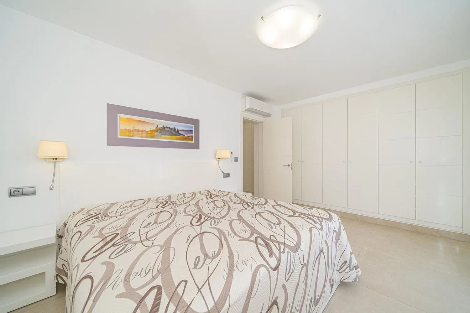 The bright and inviting living area offers direct access to the private pool, which is enhanced by a modern salt electrolysis system. The independent kitchen is outfitted with premium appliances, perfect for culinary enthusiasts. Additionally, the villa includes a private office, a laundry room, and extra storage space.