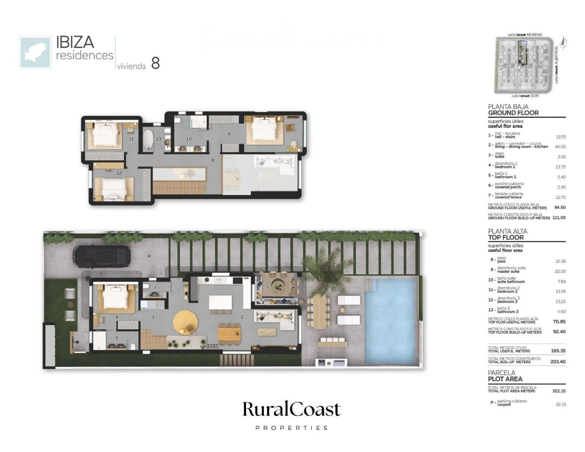 Ibiza Residences, de la exclusiva colección, es una promoción compuesta por solo 10 villas independientes que reinterpretan el estilo mediterráneo más auténtico. Situadas en Albir, a pocos minutos a pie del centro y a los pies del Parque Natural de Sierra Helada, estas viviendas capturan el equilibrio perfecto entre la tranquilidad de la naturaleza y la energía vibrante del Mediterráneo. Cada villa combina materiales nobles con líneas arquitectónicas modernas, ofreciendo espacios luminosos, funcionales y llenos de personalidad. Esta vivienda —modelo Ibiza 8 — destaca por sus 165 m² útiles y 203 m² construidos, sobre una parcela privada de 323 m² con piscina y jardín independiente. En la planta baja, un espectacular salón a doble altura se integra con la cocina abierta con isla central, creando un ambiente amplio y sofisticado. Grandes ventanales conectan el interior con el jardín, donde la piscina evoca las aguas turquesas de las Islas Baleares. Esta planta también alberga un dormitorio principal con baño en suite y acceso directo al jardín, además de un aseo de cortesía y zona de aparcamiento. La planta superior incluye tres dormitorios más, dos de ellos tipo suite, y un baño adicional. La suite principal en esta planta dispone de vestidor y vistas panorámicas a la montaña, reflejando el concepto de bienestar mediterráneo que define toda la promoción. Cada detalle ha sido diseñado para disfrutar todo el año: suelo radiante, grandes terrazas, espacios diáfanos y un interiorismo inspirado en la serenidad y la luz del Mediterráneo. Además, existe la posibilidad de adquirir un paquete de mobiliario y decoración premium. Es más que un hogar: es una declaración de estilo de vida. Modernidad sin perder raíces, lujo sostenible y confort en un entorno natural único.