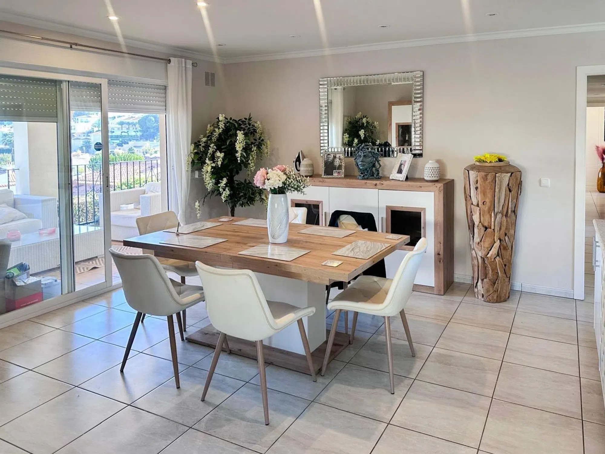 Descubre tu refugio en Alfaz del Pi Enclavado en la deseable zona de Foia Blanca, este impresionante chalet de 360 m² se erige como un santuario de paz y confort en la provincia de Alicante. Con un diseño reformado que resalta la luminosidad y amplitud, cada rincón de esta villa está pensado para brindar una experiencia de vida idílica. Espacios Generosos Con seis amplias habitaciones y cuatro baños, esta propiedad es perfecta para familias o para quienes simplemente buscan disfrutar de la comodidad y el espacio. La distribución diáfana permite un flujo natural entre los espacios, creando un ambiente acogedor que invita a la convivencia y la relajación. Disfruta del Aire Libre El chalet cuenta con un espacioso terreno de 770 m² que incluye un jardín cuidadosamente diseñado y una piscina que será el epicentro de tus días soleados. Imagina disfrutando de veranos interminables y noches estrelladas desde la terraza abierta de 30 m², ideal para cenas al aire libre o momentos de contemplación bajo el cielo. La terraza cubierta ofrece un refugio durante las horas más calurosas, convirtiendo cada encuentro en una experiencia memorable. Confort y Seguridad La villa está equipada con aire acondicionado frío/calor, garantizando que el clima siempre sea de tu agrado, sin importar la estación. Además, cuenta con calefacción para esos días más frescos. La oportunidad de disfrutar de un hogar que no solo es bello, sino también práctico, se complementa con características como sistema de doble acristalamiento, puerta de seguridad y un encantador hogar con chimenea, que aporta un toque cálido y acogedor. Ubicación Ideal Situada en Alfaz del Pi, una de las zonas más codiciadas de la Costa Blanca, esta villa se beneficia de una ubicación estratégica, ofreciendo un acceso fácil a servicios locales, como restaurantes, tiendas y escuelas. La orientación sureste de la propiedad no solo maximiza la luz natural, sino que también proporciona vistas que invitan a apreciar la belleza del entorno. Detalles Adicionales Para tu conveniencia, se ha integrado un cuarto de lavandería y un amplio espacio de almacenamiento que asegura que tu hogar se mantenga organizado y libre de desorden. La propiedad es completamente exterior, lo que permite que la luz del sol inunde cada habitación, creando un ambiente vibrante y lleno de vida. Este chalet en Foia Blanca no es solo una propiedad; es una invitación a vivir la vida que siempre has soñado. Cada elemento ha sido diseñado para ofrecerte lo mejor en confort y estilo. No pierdas la oportunidad de convertirlo en tu nuevo hogar.