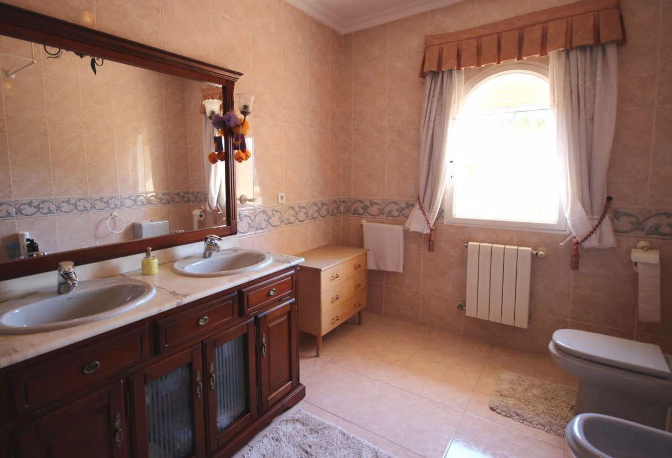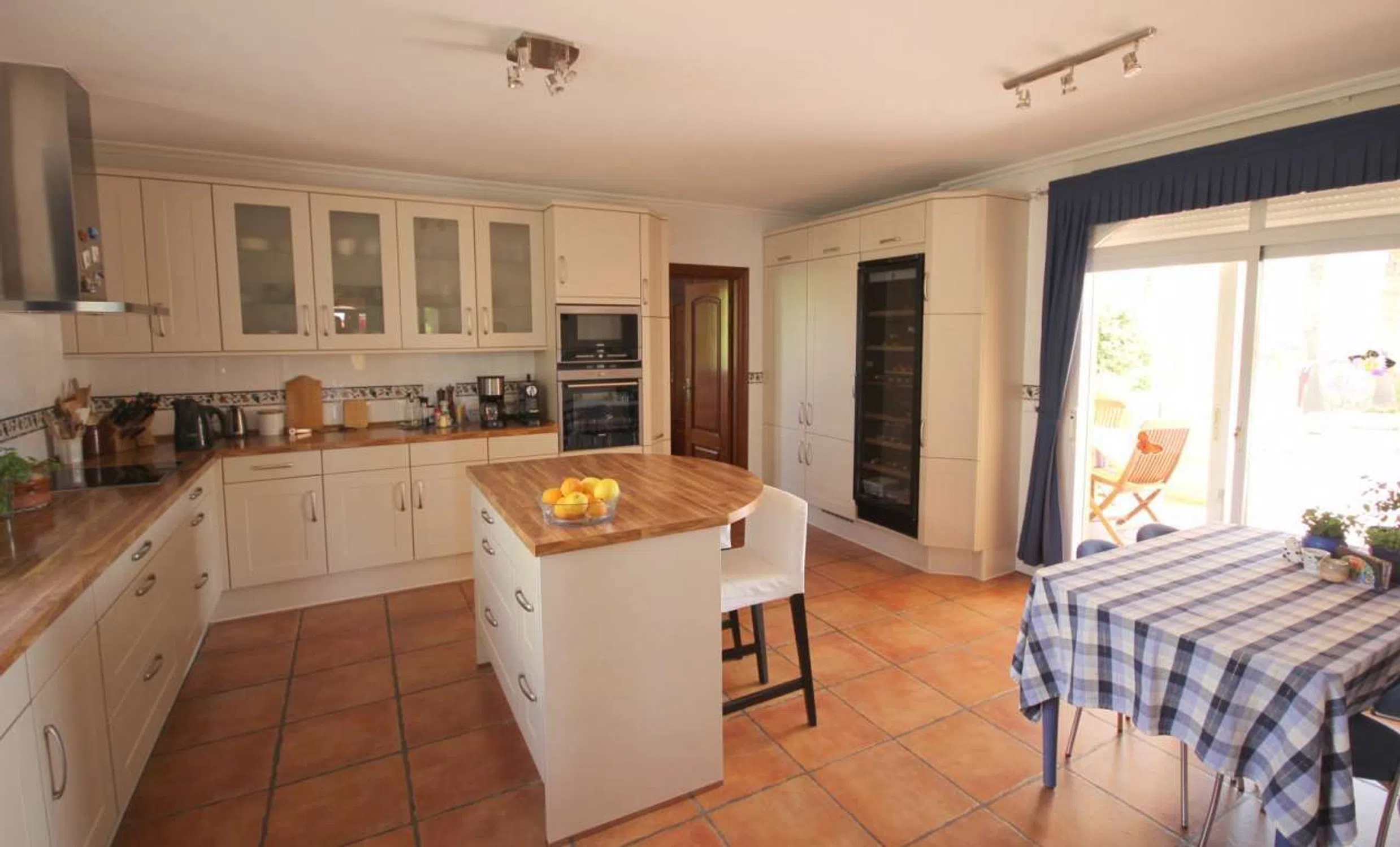 Maravillosa villa situada en una tranquila y privada zona de Alfaz del Pi. Fue construida en el año 2000 y se conserva en perfecto estado. La vivienda principal consta de cinco dormitorios, cuatro cuartos de baño, aseo de invitados, sala de estar y biblioteca con chimenea, comedor, cocina independiente y ascensor. Tiene dos apartamentos independientes para los invitados con su propio salón y cocina, uno de ellos con dos dormitorios y un cuarto de baño y el otro con un dormitorio y un cuarto de baño. En la gran parcela de aproximadamente 16.000 m2 hay un precioso jardín, piscina, ducha exterior, zona de relax, cocina de verano con barbacoa y jacuzzi. Hay una gran zona de aparcamiento y dos garajes cerrados con capacidad para seis vehículos.