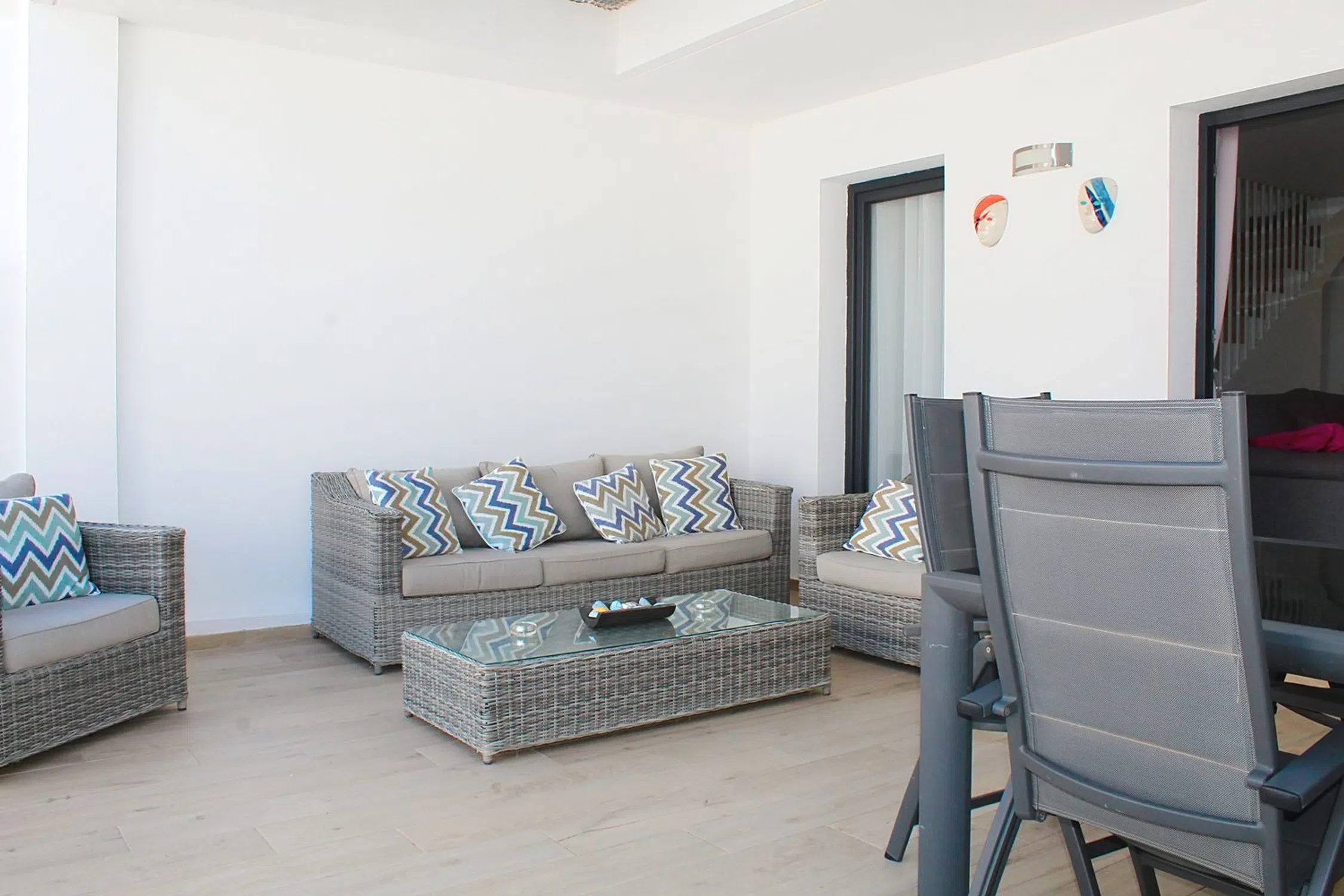 Casa adosada de estilo moderno ubicada en una tranquila comunidad cerrada, con vistas panorámicas de los pueblos y aldeas de los alrededores. La propiedad se completó en 2018 y ha tenido un solo propietario desde que era nueva. Construida en un total de tres plantas, la entrada es por la planta baja, con entrada independiente a un amplio y espacioso garaje de más de 50 metros cuadrados. Las escaleras te llevarán al primer piso donde encontrarás la sala de estar principal y la cocina abierta. En la parte trasera hay una pequeña terraza exterior, y desde la sala de estar se accede a la terraza principal con amplio espacio para mesa y asientos al aire libre. También en la planta principal hay un aseo y un lavadero para lavadora, etc. Hasta la planta superior donde se encuentran los dormitorios, dos dormitorios de igual tamaño con armarios empotrados y baño independiente. Finalmente, la suite principal tiene su propio baño, muchos armarios empotrados y una gran terraza desde donde disfrutar de las impresionantes vistas de los alrededores.