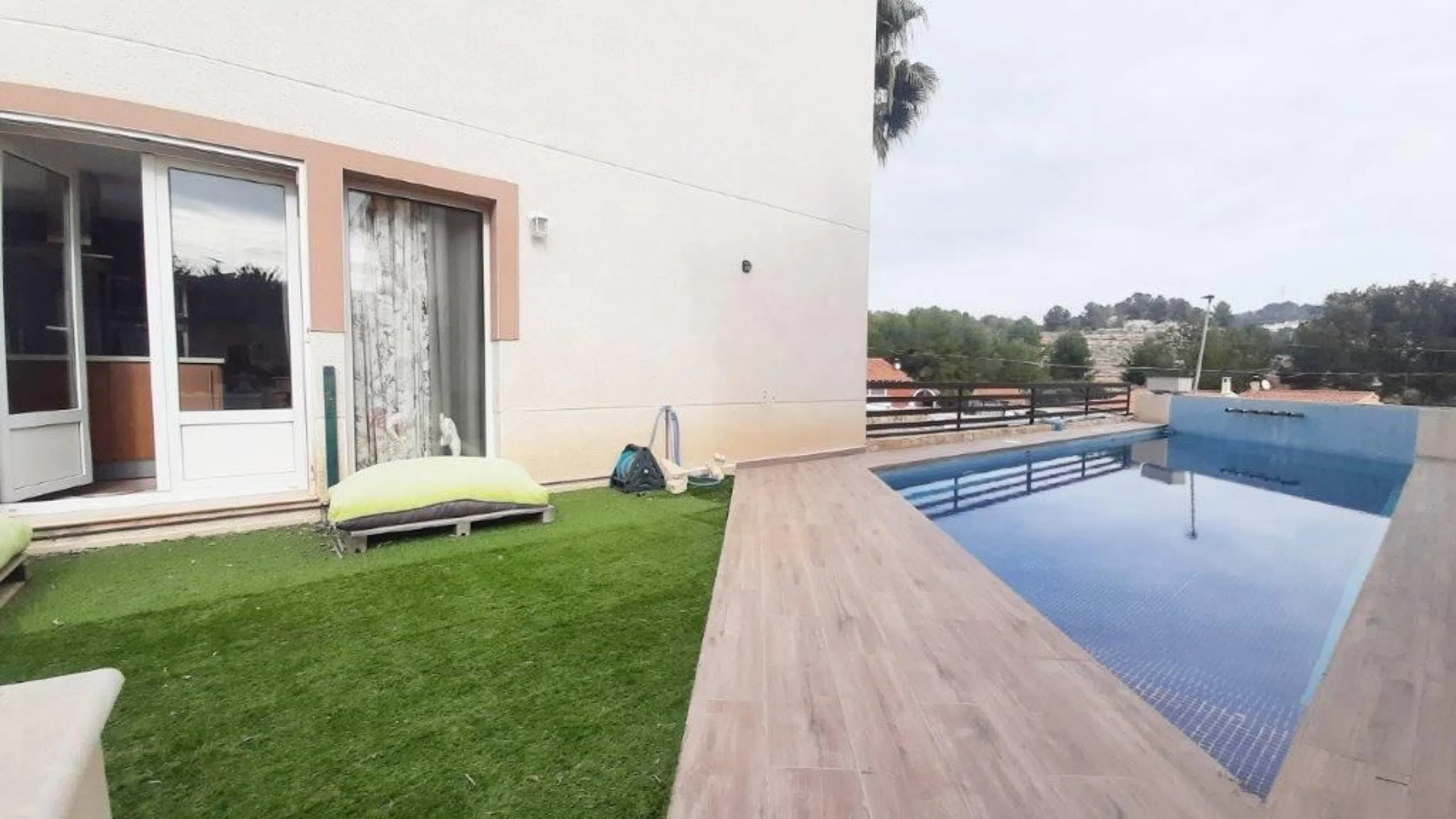 Amplia casa familiar en zona residencial tranquila, cerca del colegio noruego. Chalet adosado de 4 dormitorios y amplio garaje en sótano, actualmente dividido en taller y trastero. En la planta principal amplio salón con cocina abierta con isla, un baño y un dormitorio. Desde la zona de cocina se accede fácilmente a un enorme espacio exterior en terrazas con piscina privada. En la planta superior tenemos un dormitorio principal con baño en suite y 2 dormitorios adicionales con otro baño. Subiendo más, hay una terraza solarium con vistas panorámicas. Esta encantadora propiedad está lista para entrar a vivir, así que reserve su visita con nosotros hoy mismo.