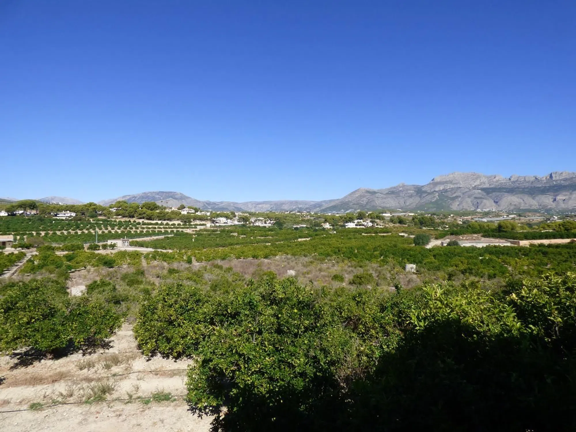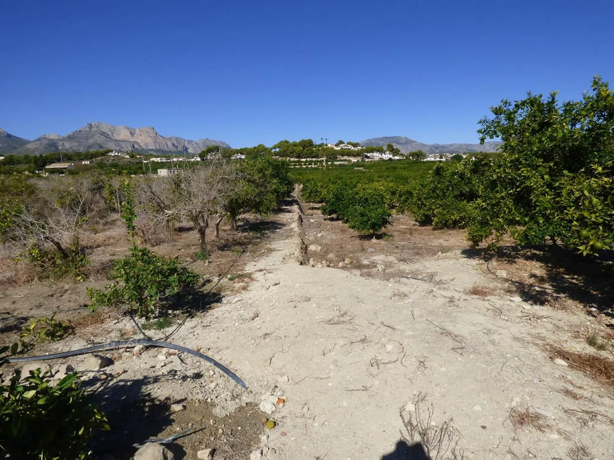 Este terreno agrícola con varias construcciones se encuentra en Pda. El Planet, en Alfaz del Pi. Cuenta con una extensión de unos 15.000 m2 aproximadamente, en la que se permite una edificación para vivienda unifamiliar de hasta 300 m2. La finca está dotada de agua potable y luz, y en ella existe una plantación de naranjos de la variedad de Valencia Late, con una producción según año de entre 35.000 Kg y 42.000 Kg aproximadamente. Tiene instalación de riego por goteo automatizado, depósito centralizado para fumigar con instalación por toda la finca con toma en cada bancal. También cuenta con una caseta de 76 m2 para herramientas y maquinaria que el propietario transformaría en vivienda por solo 20.000 € más. Además cuenta con una balsa de 80 m2. Además cuenta con una nave de 140 m2. Unas vistas impresionantes a la montaña, viéndose también el Albir. ESTAMOS DISPUESTOS A ESCUCHAR OFERTAS.