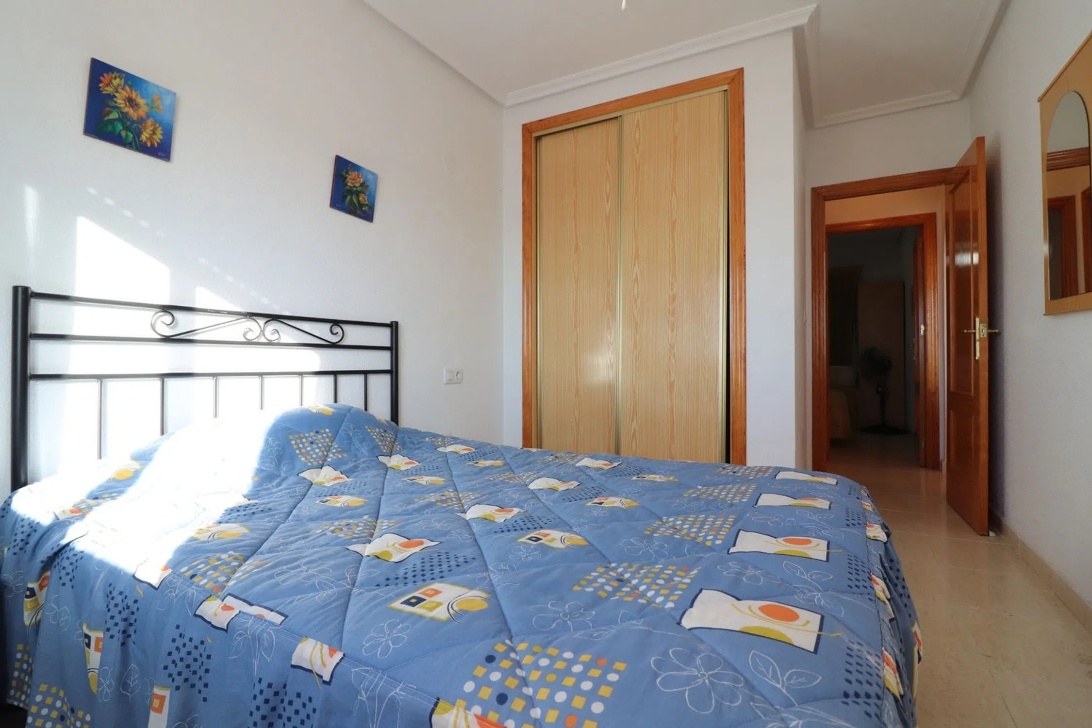 Este apartamento de dos dormitorios en primera planta, con orientación oeste, en Algorfa se encuentra a 5 minutos a pie de diversos servicios locales, como cafeterías, restaurantes, farmacia, tiendas, un banco y un pequeño supermercado. El polideportivo municipal, la piscina y un popular bar están a solo 10 minutos a pie. Para los amantes del golf, el famoso La Finca Golf Resort está a solo 5 minutos en coche, mientras que las hermosas playas de la Costa Blanca Sur están a unos 15 minutos. Este apartamento, impecablemente cuidado, ofrece aproximadamente 63 m² de espacio interior y se encuentra en un complejo cerrado y seguro. El luminoso salón está equipado con aire acondicionado y cuenta con puertas correderas de doble acristalamiento que dan a una terraza privada, el lugar perfecto para disfrutar de las puestas de sol con vistas panorámicas al campo y a la montaña. La cocina americana está integrada en el salón, ideal para un estilo de vida moderno. Hay dos dormitorios dobles, el principal con armarios empotrados y aire acondicionado. Un baño familiar completa la distribución interior. Entre las características adicionales se incluyen un amplio solárium comunitario con vistas panorámicas, piscina comunitaria y zonas comunes impecables. Esta es una excelente oportunidad para adquirir una casa vacacional, una inversión para alquiler o una residencia permanente en el encantador pueblo de Algorfa, Costa Blanca Sur.